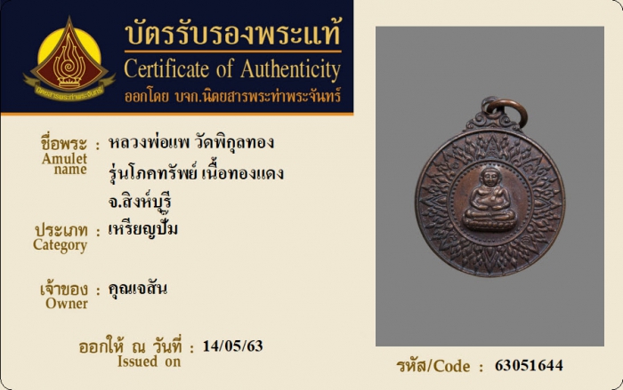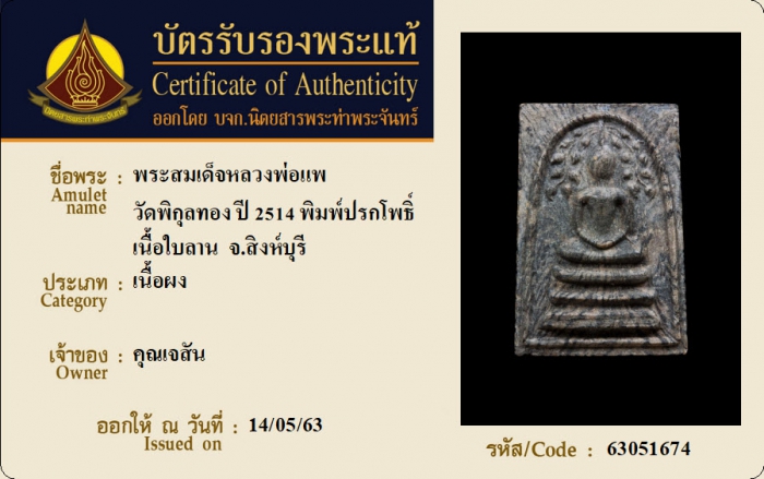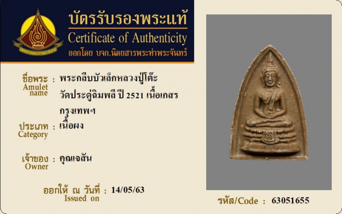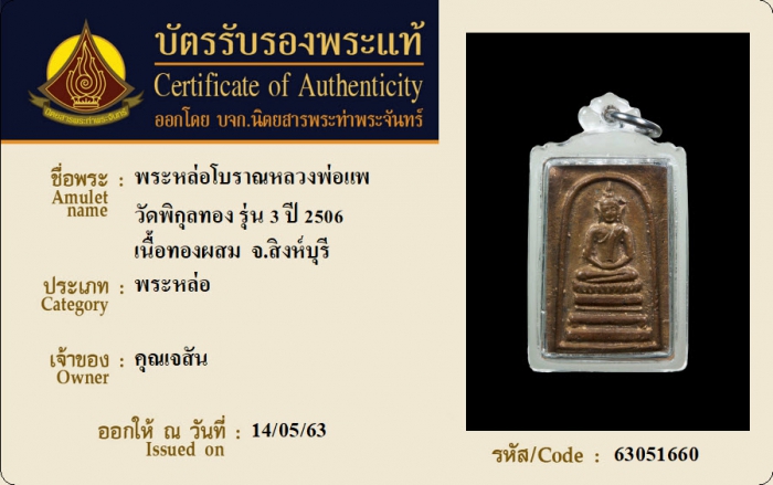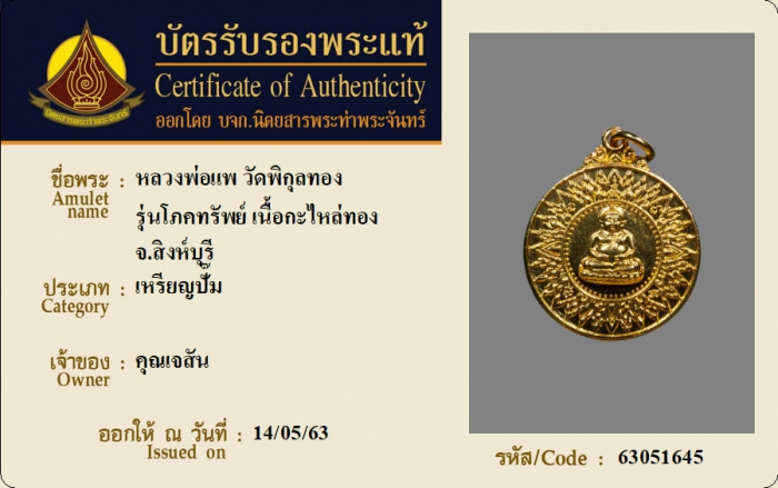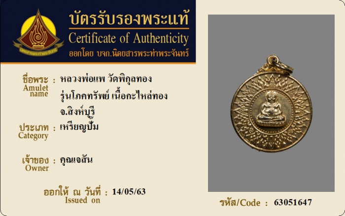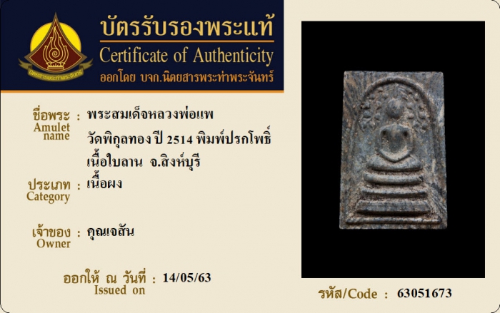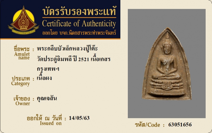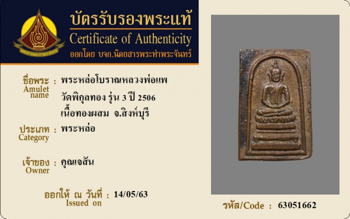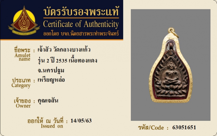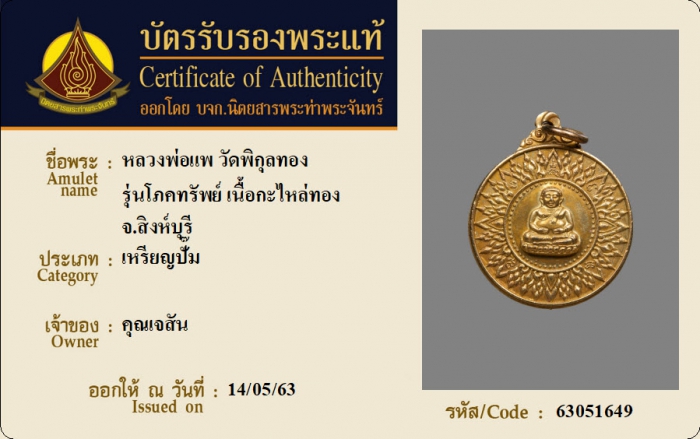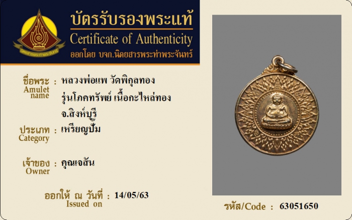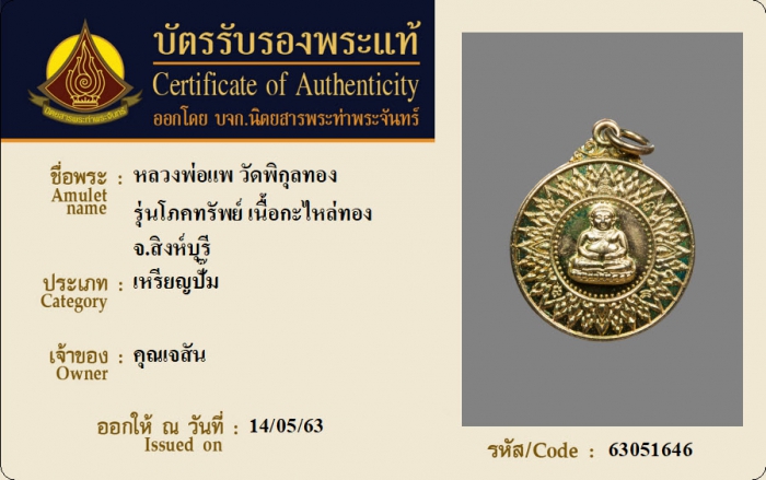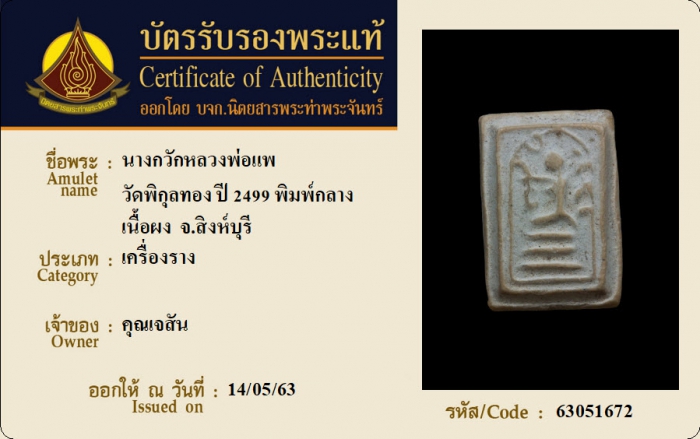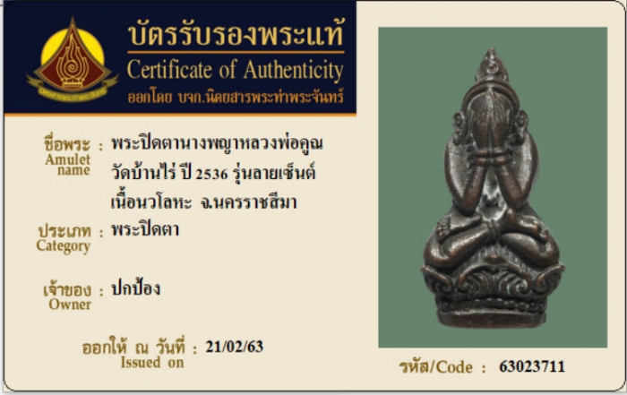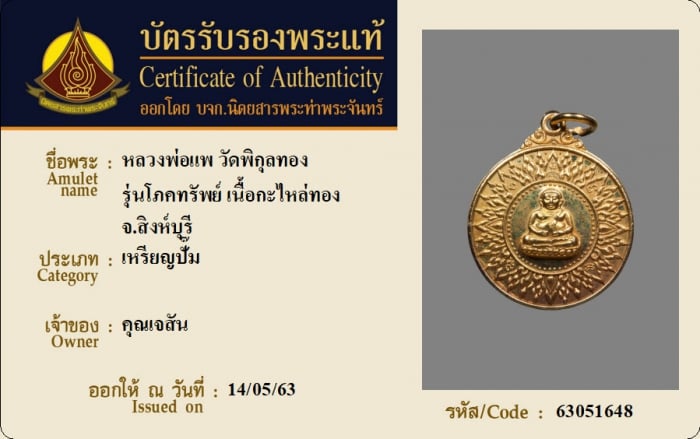 ค้นหาใบการันตีพระแท้