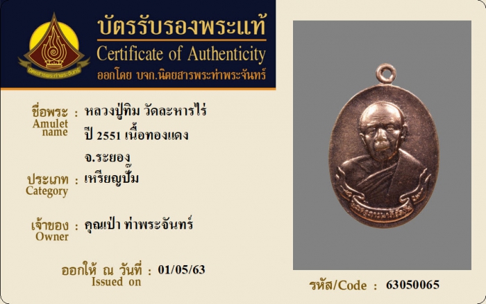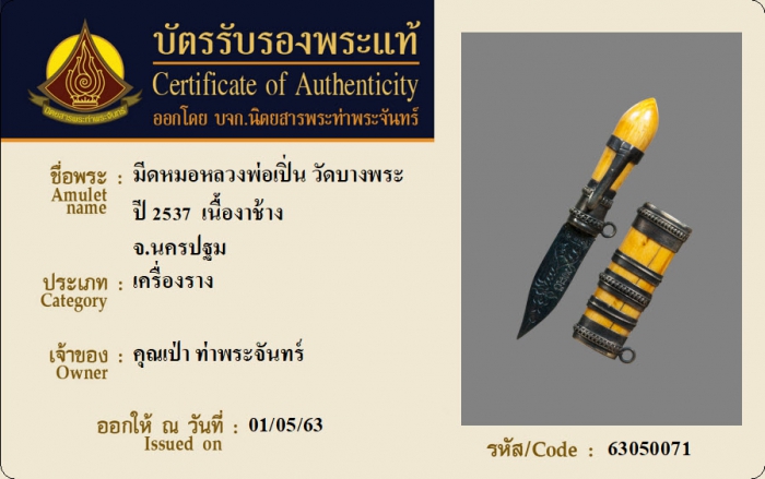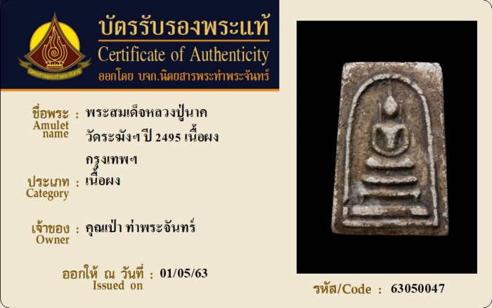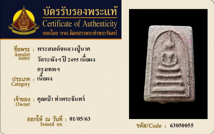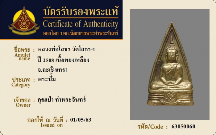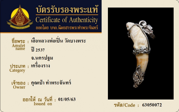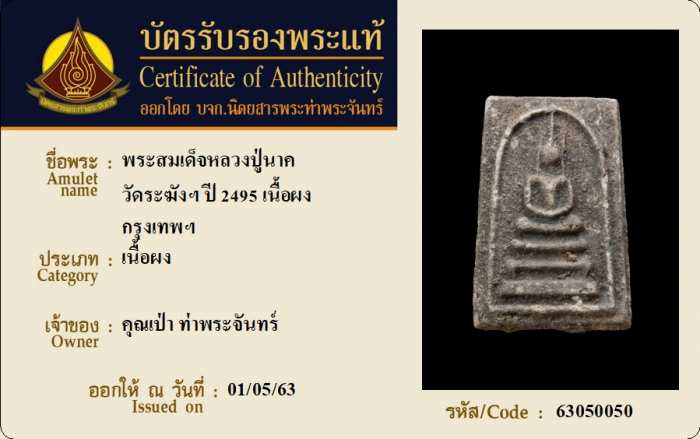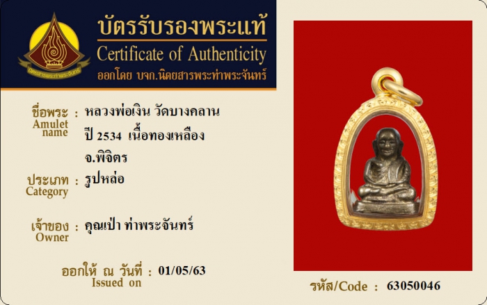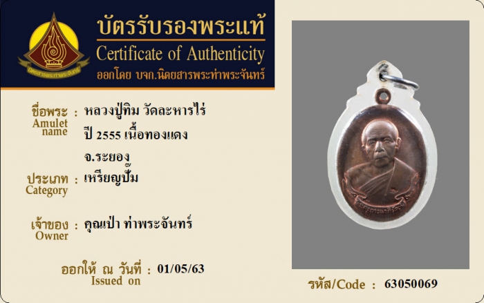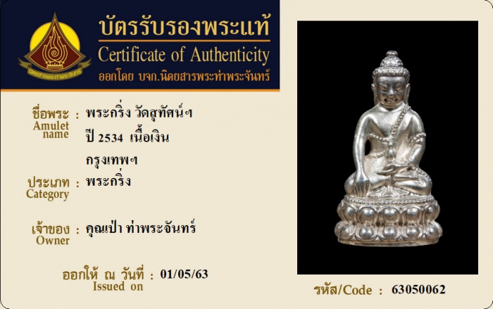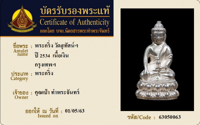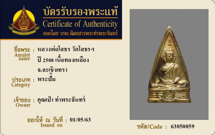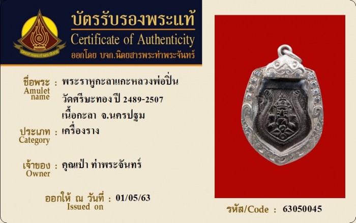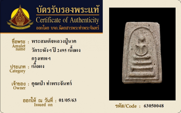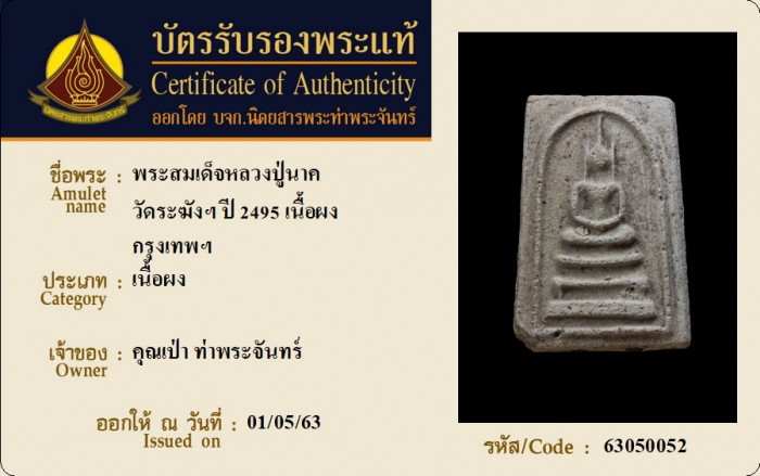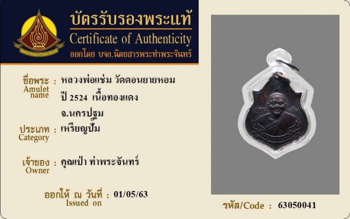 ค้นหาใบการันตีพระแท้