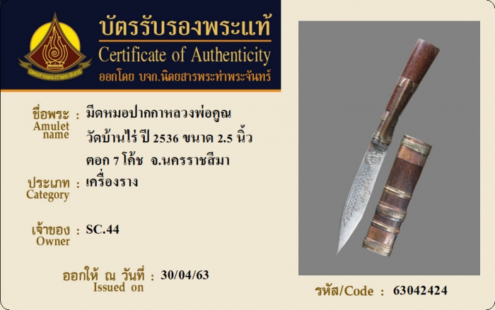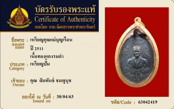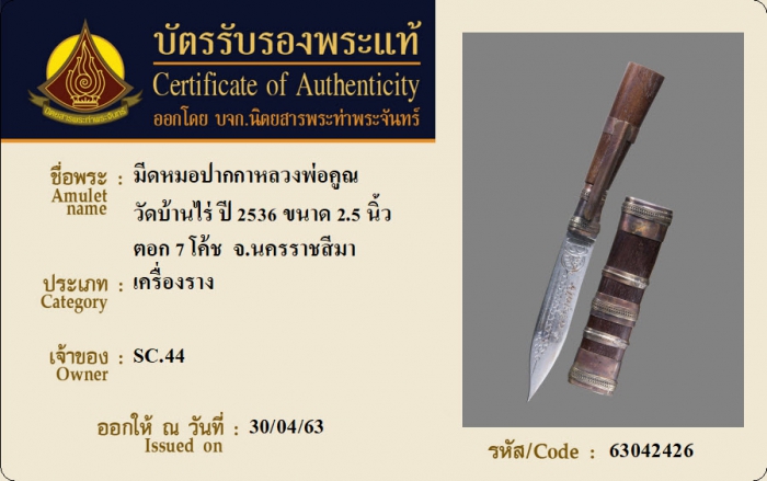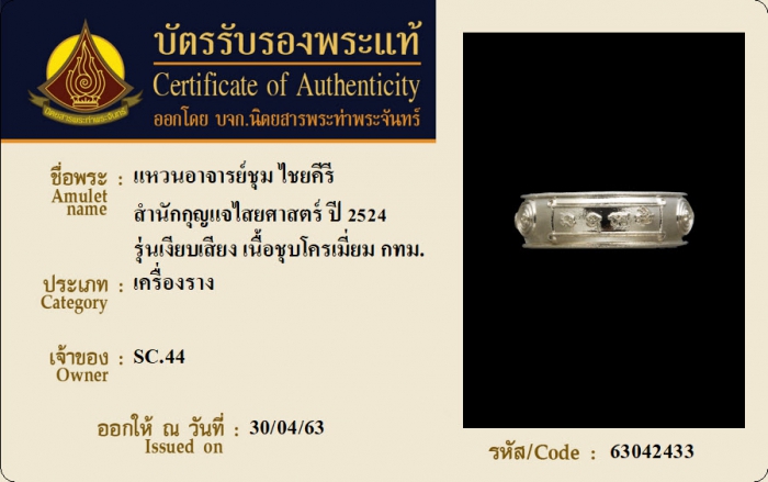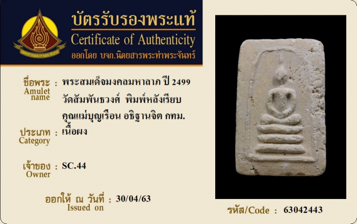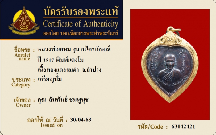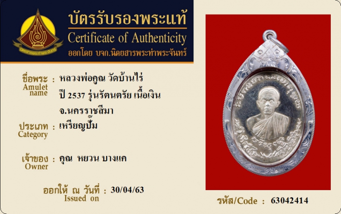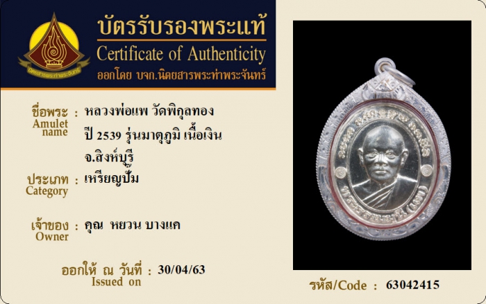 ค้นหาใบการันตีพระแท้