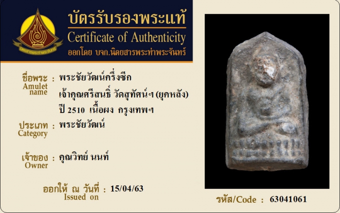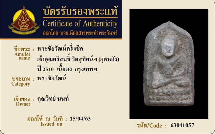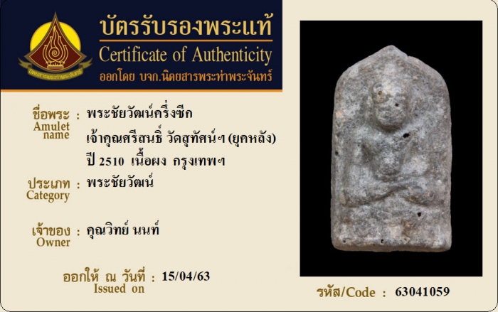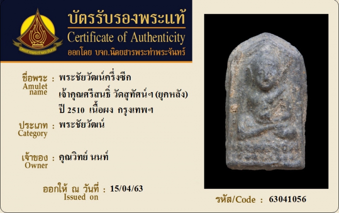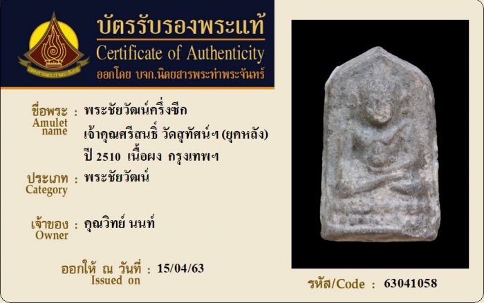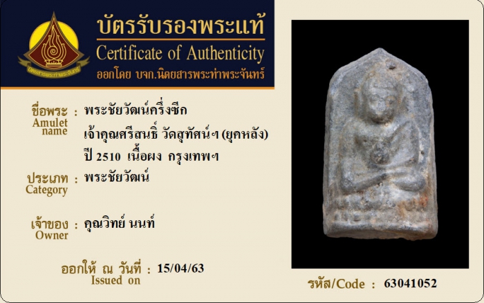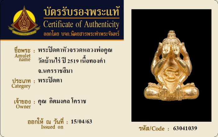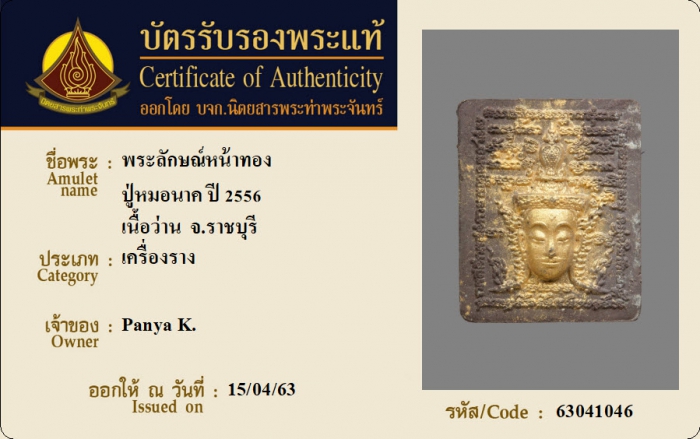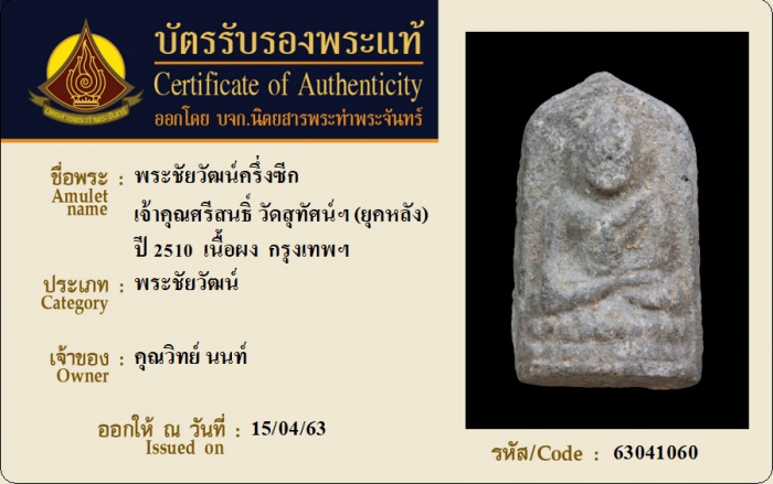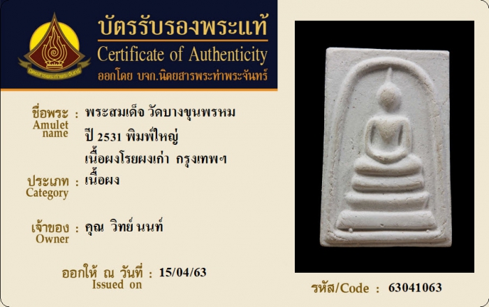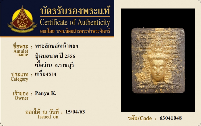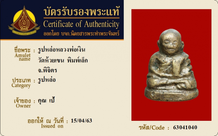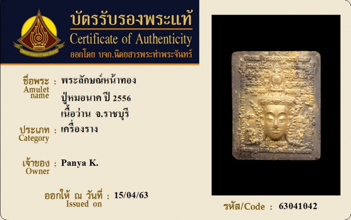 ค้นหาใบการันตีพระแท้