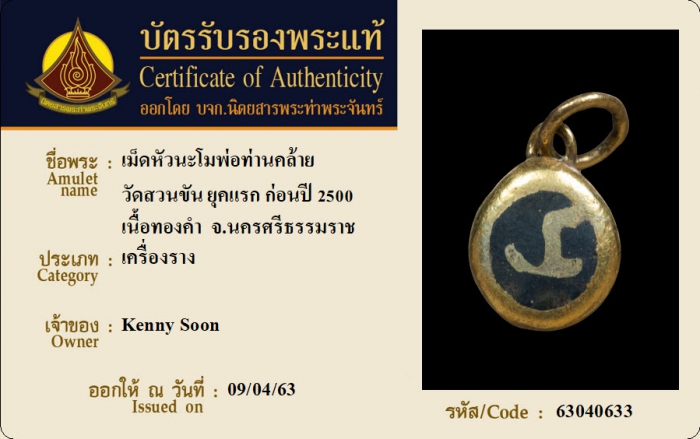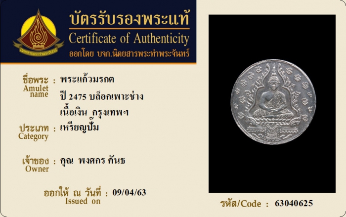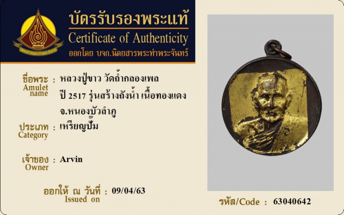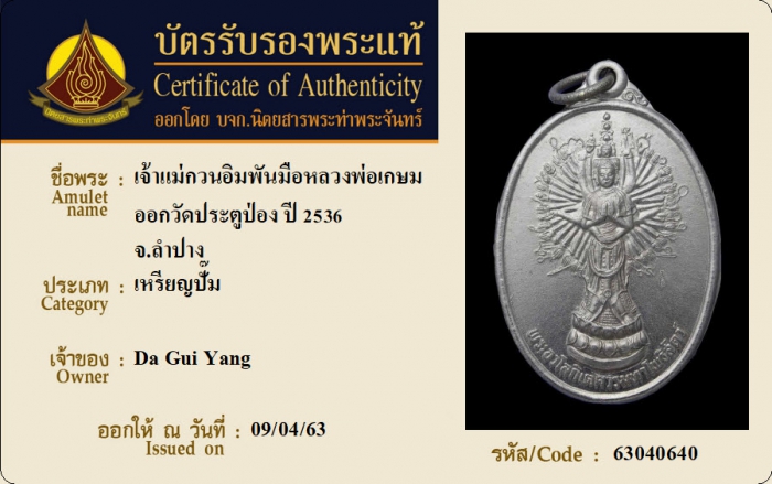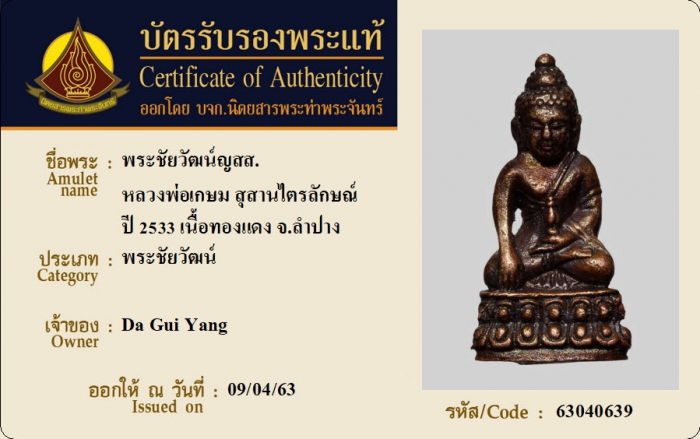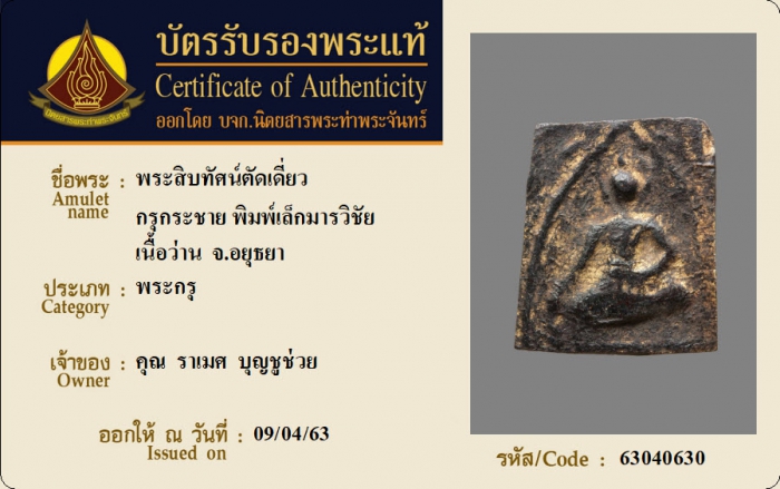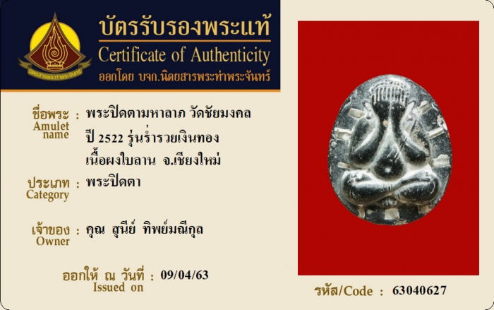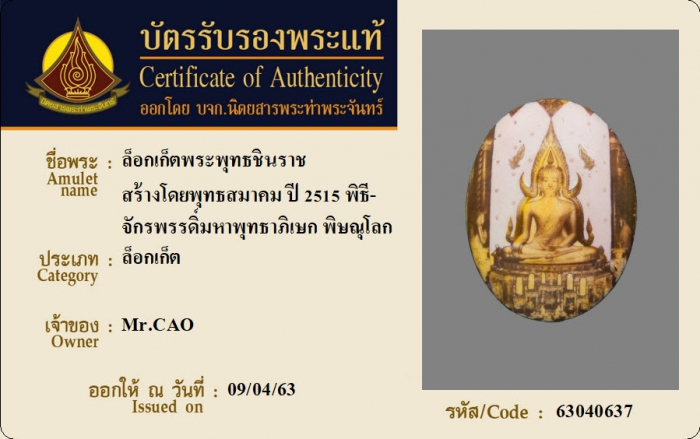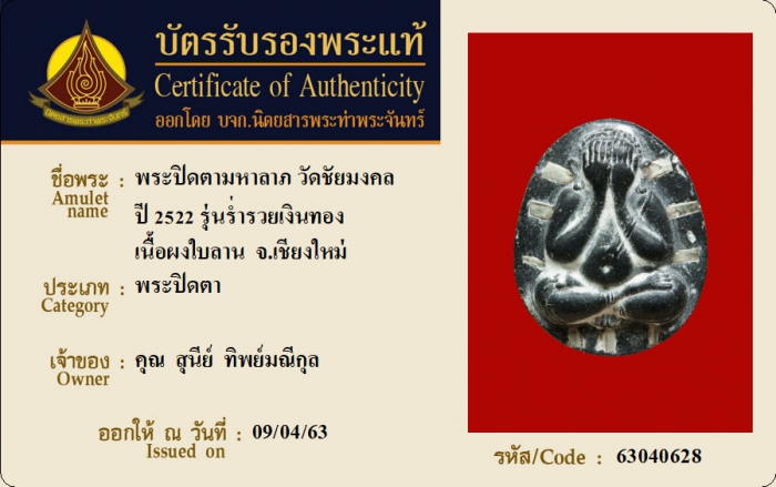ค้นหาใบการันตีพระแท้