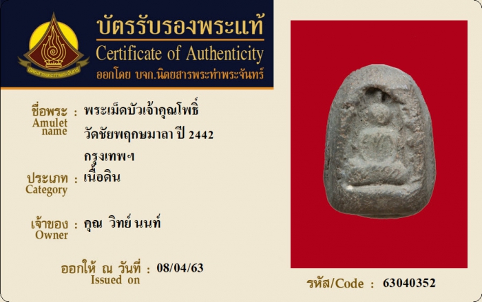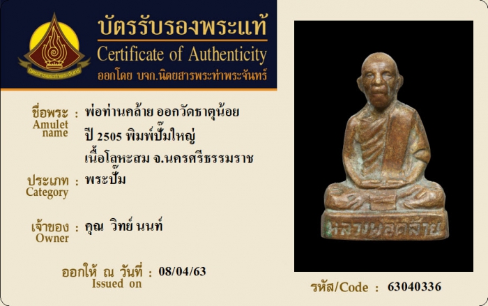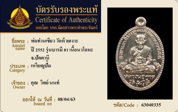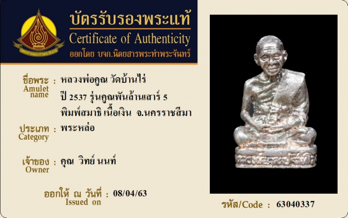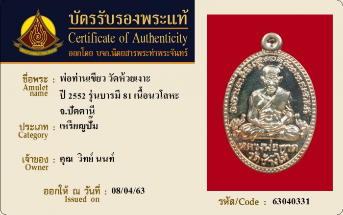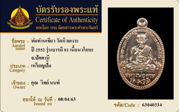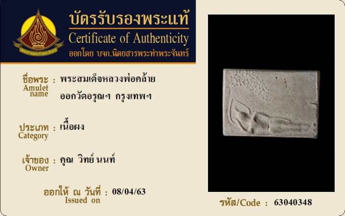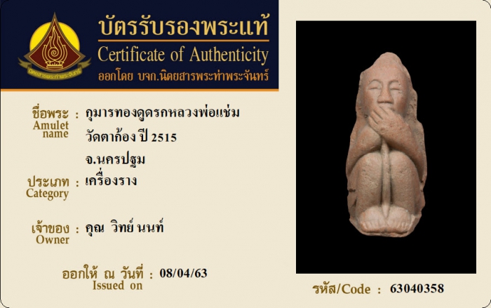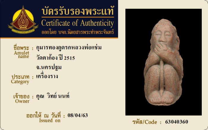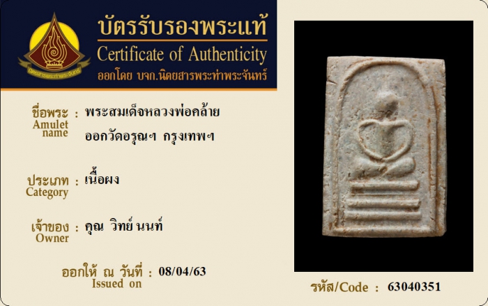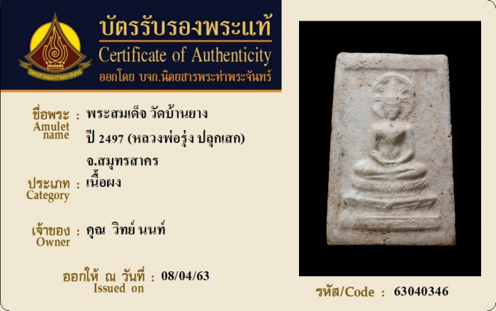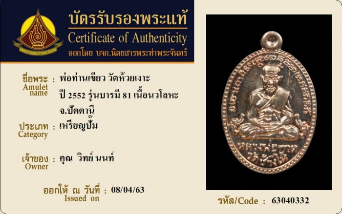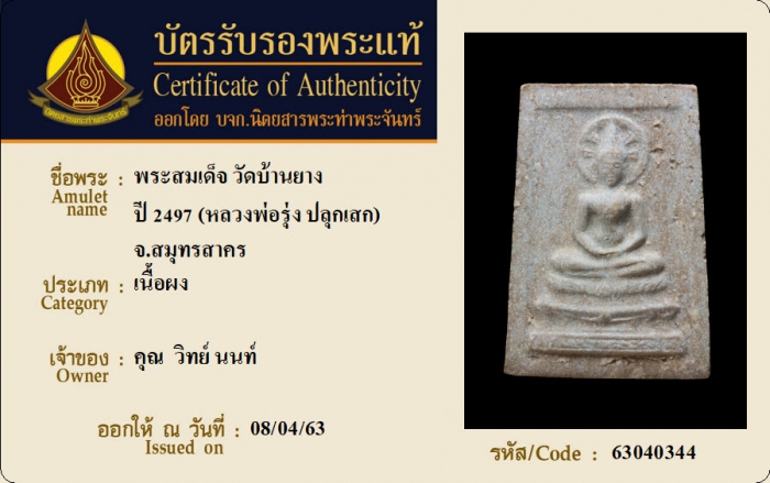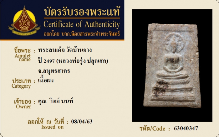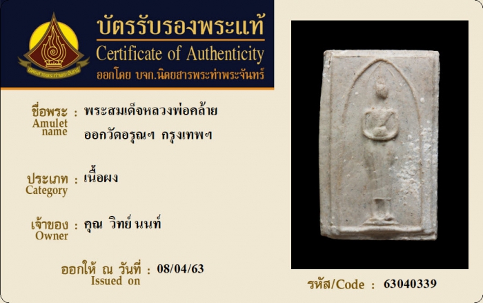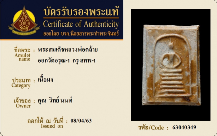ค้นหาใบการันตีพระแท้