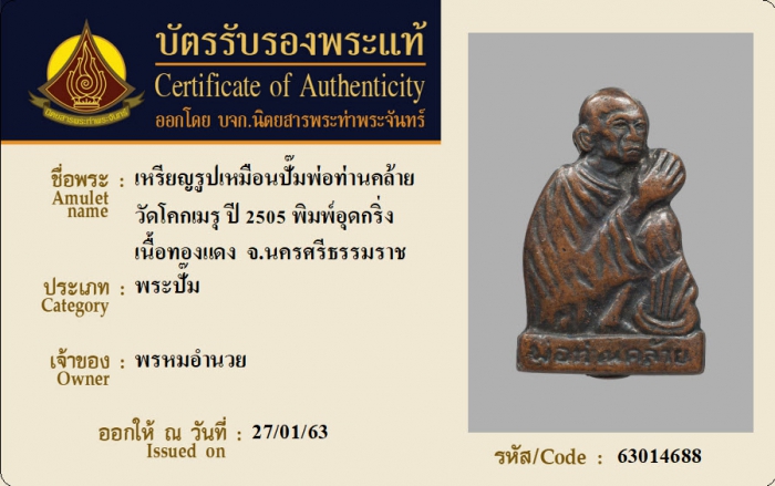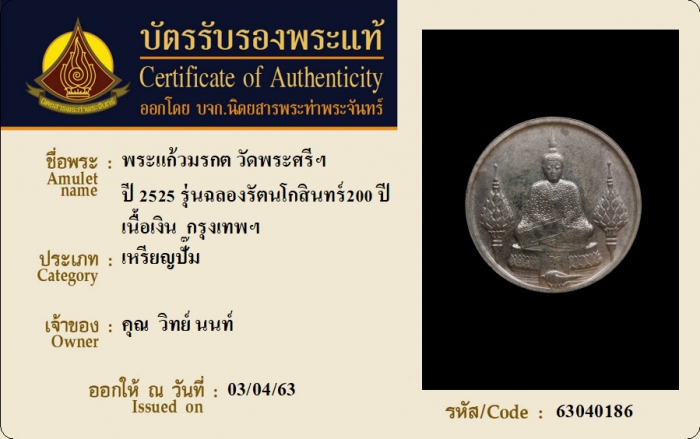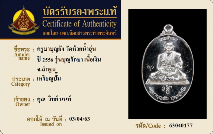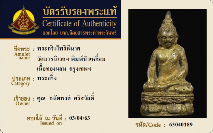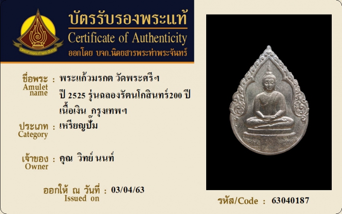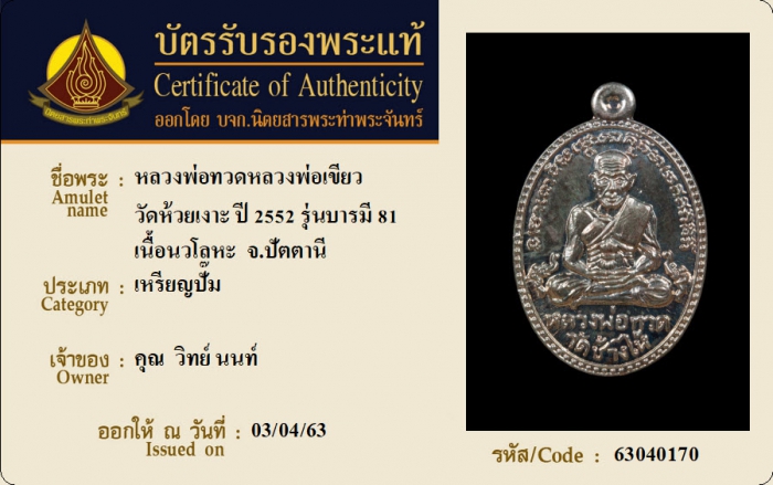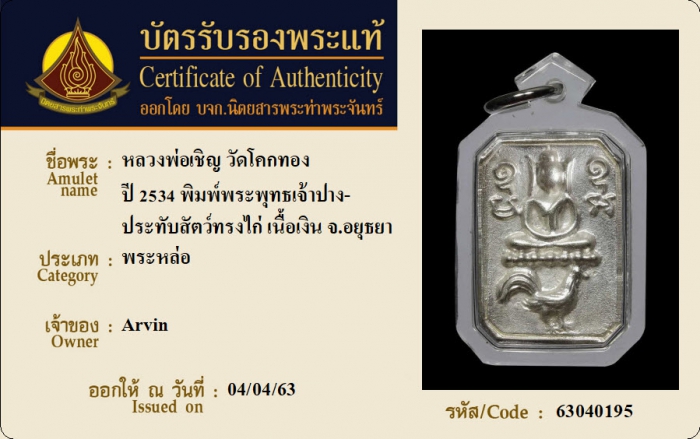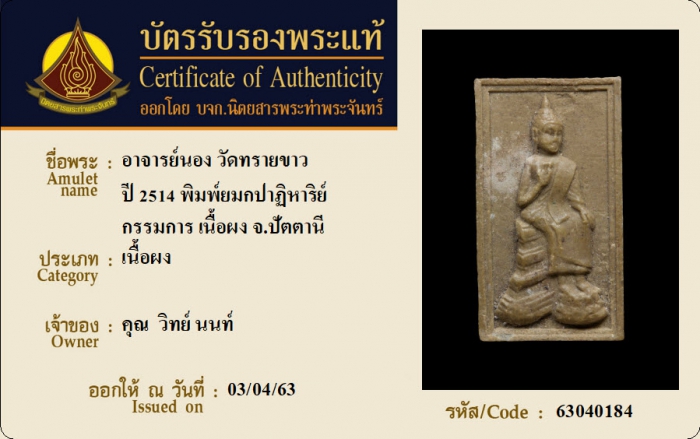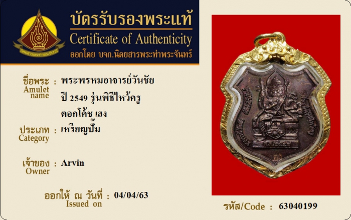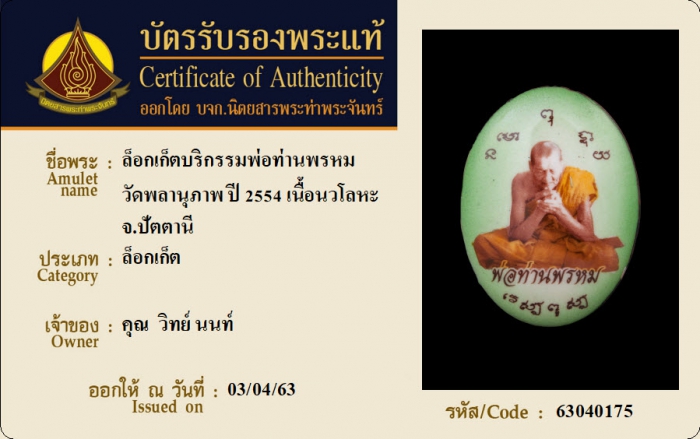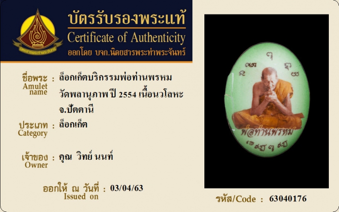 ค้นหาใบการันตีพระแท้
