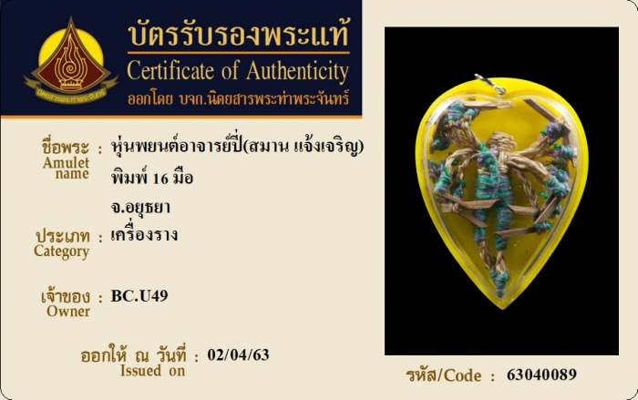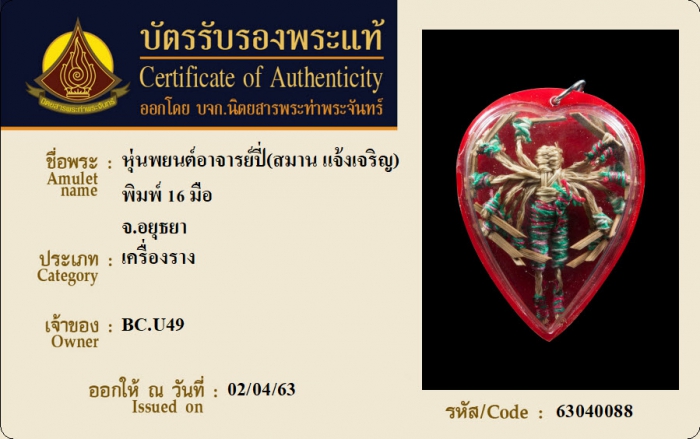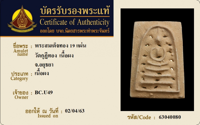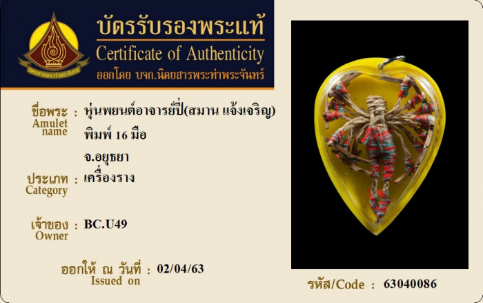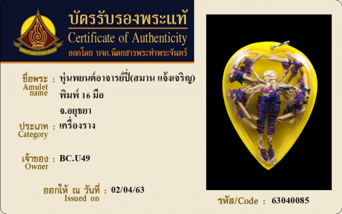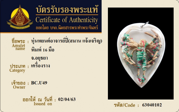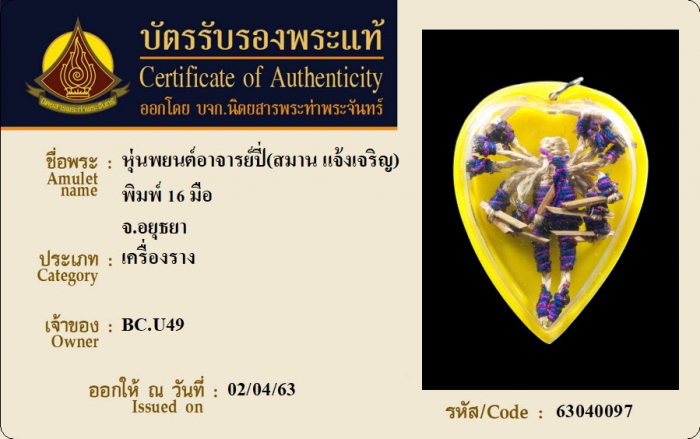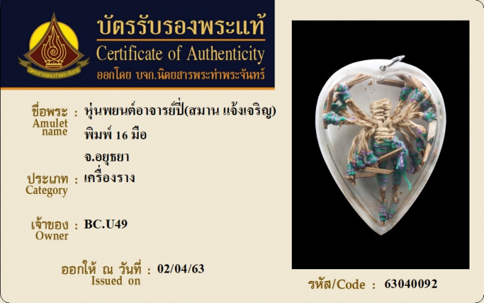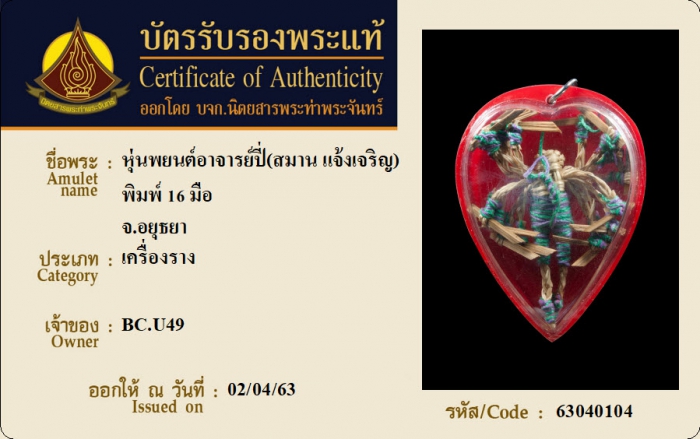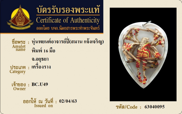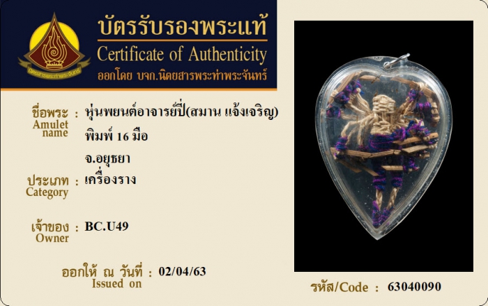 ค้นหาใบการันตีพระแท้