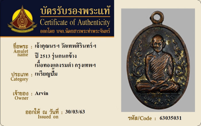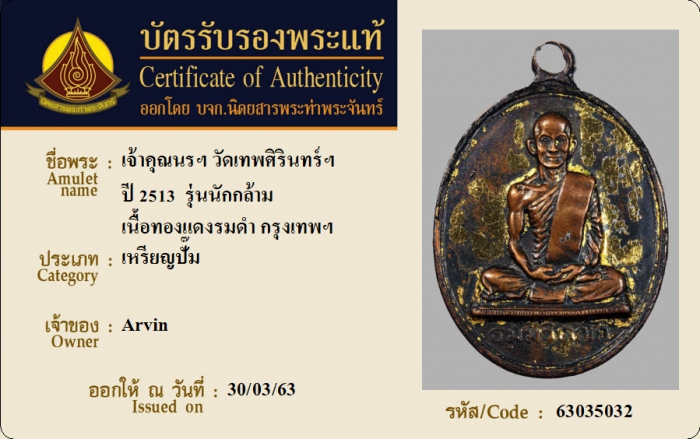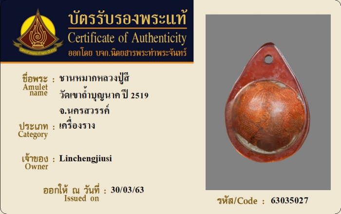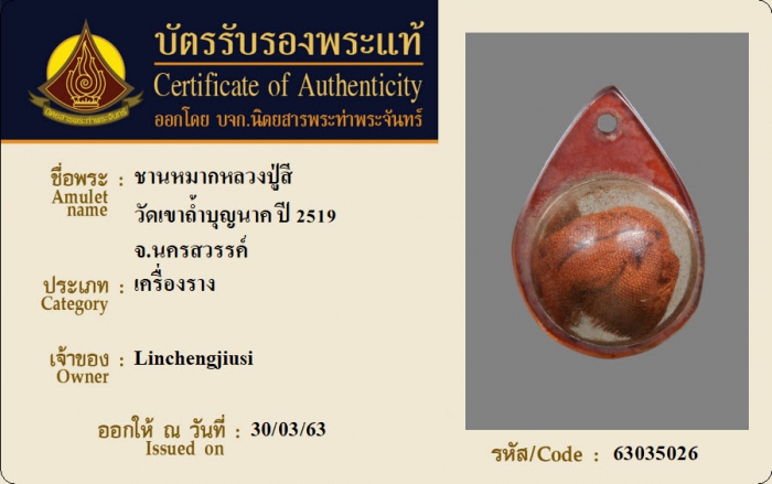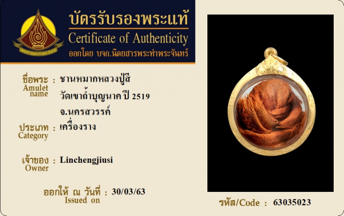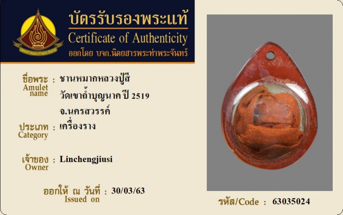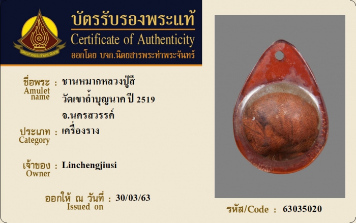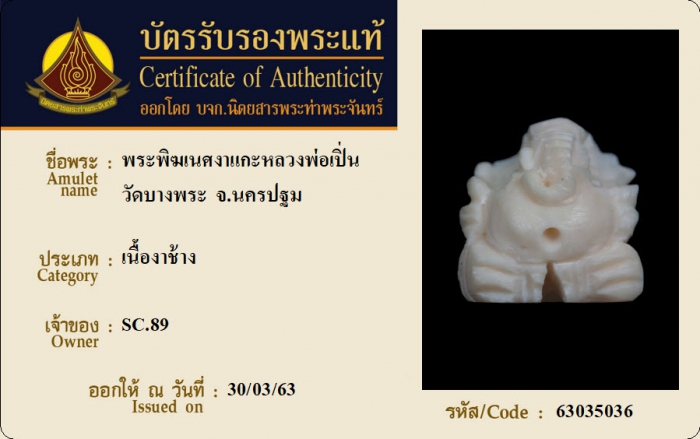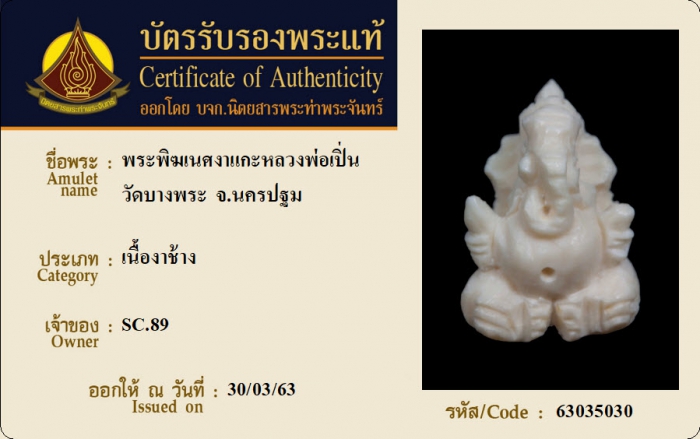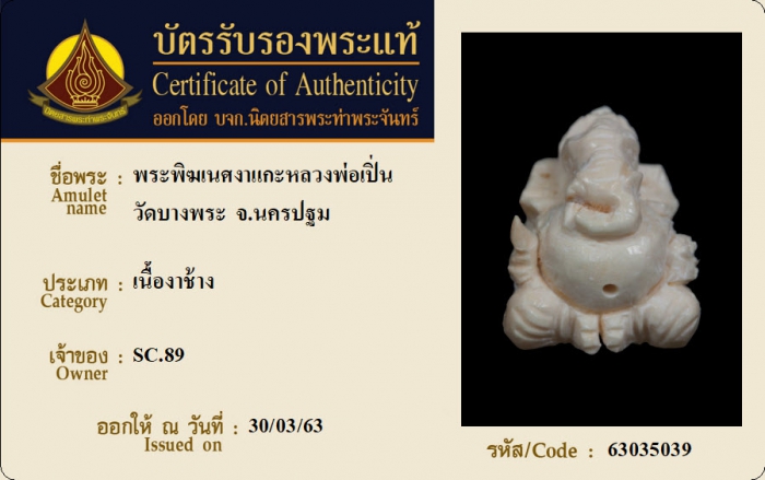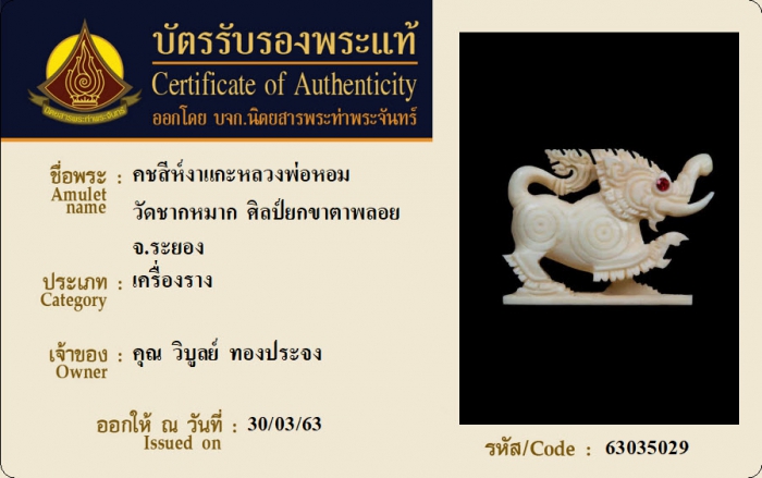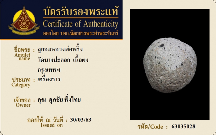 ค้นหาใบการันตีพระแท้