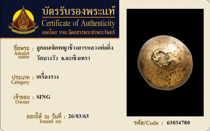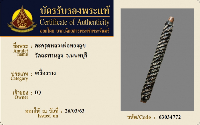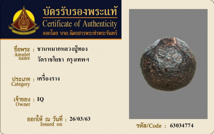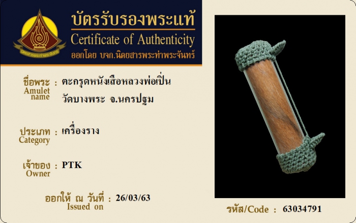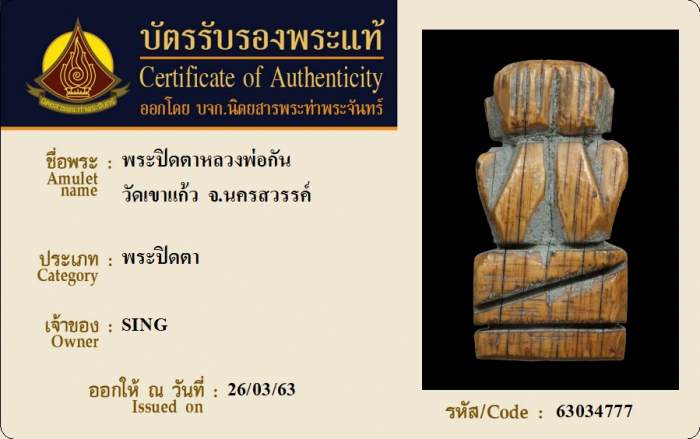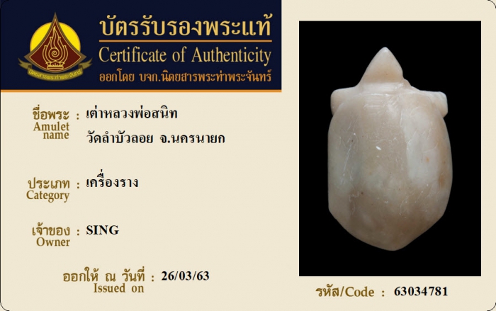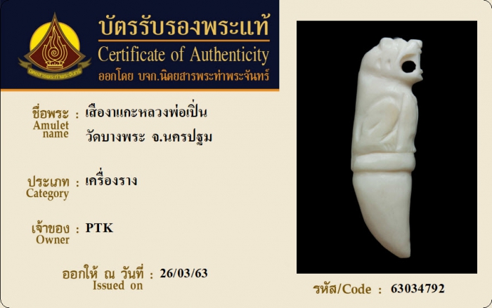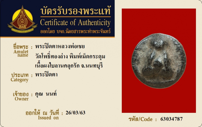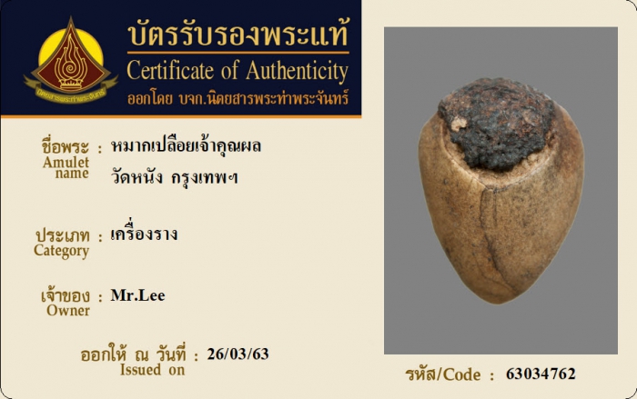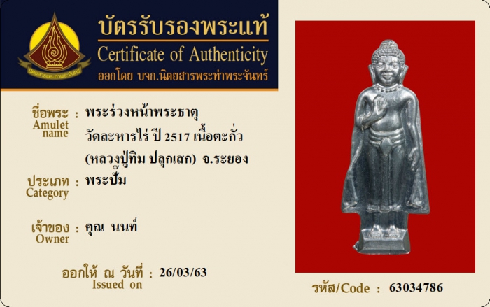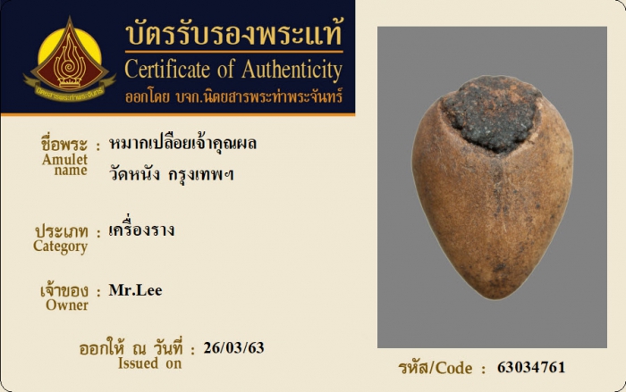 ค้นหาใบการันตีพระแท้