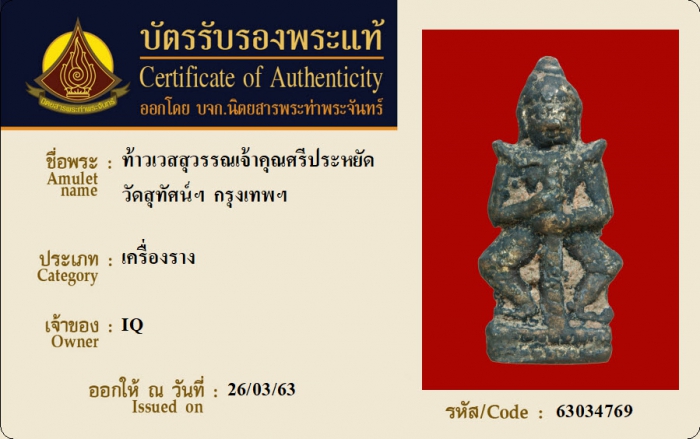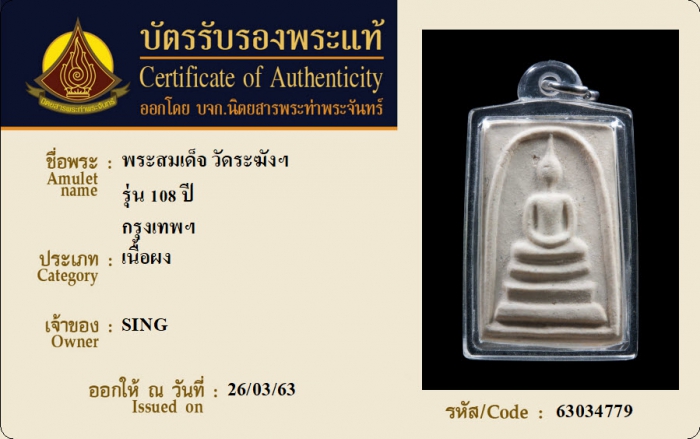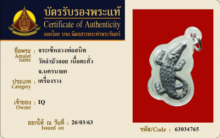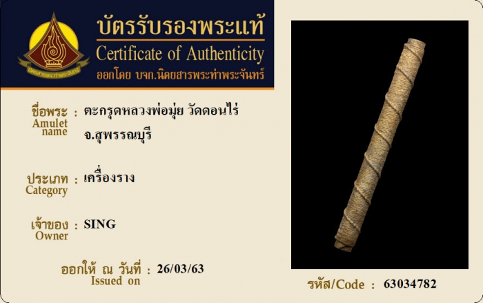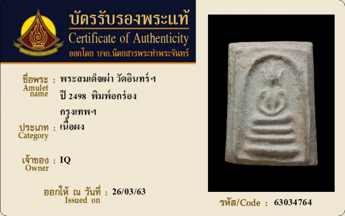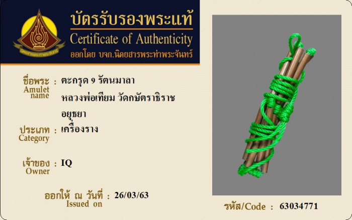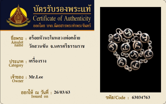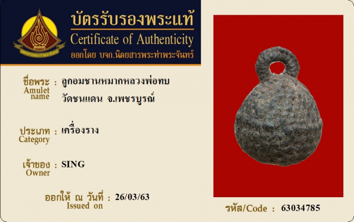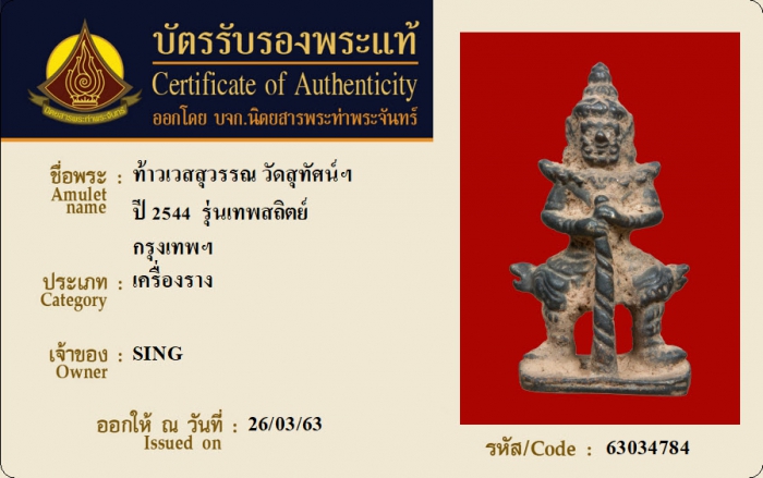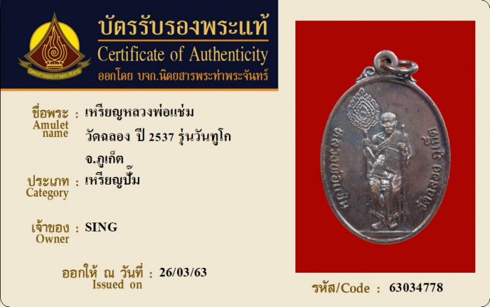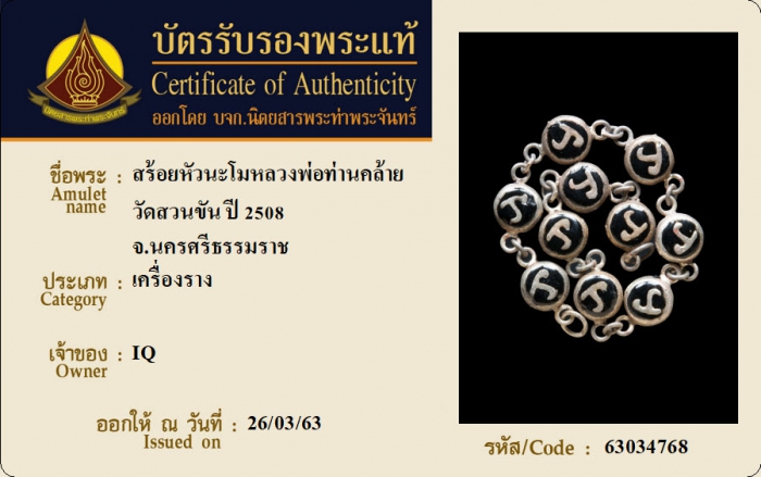 ค้นหาใบการันตีพระแท้