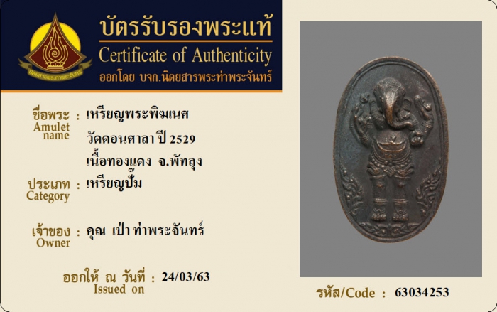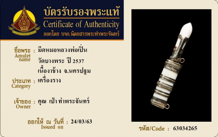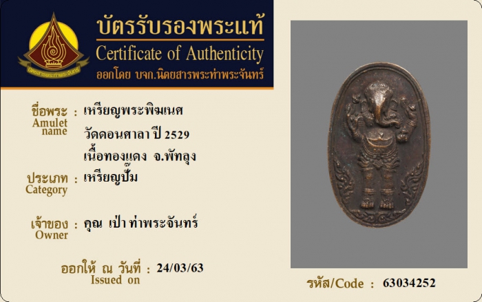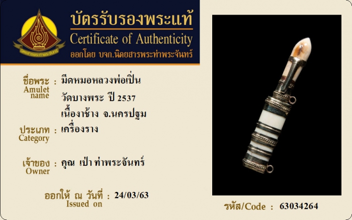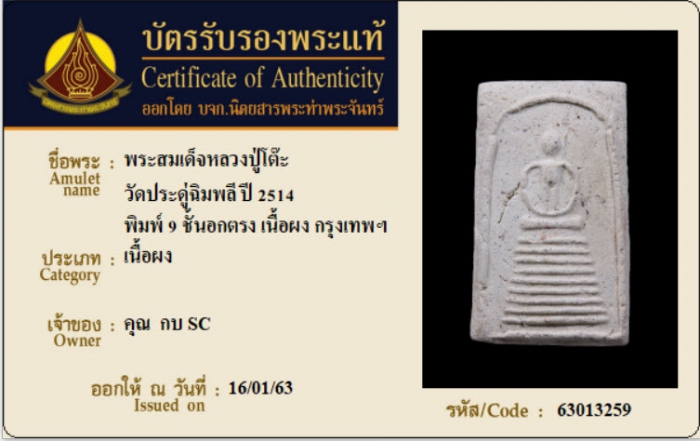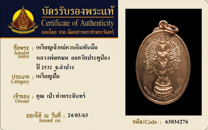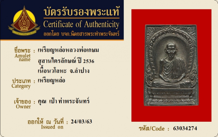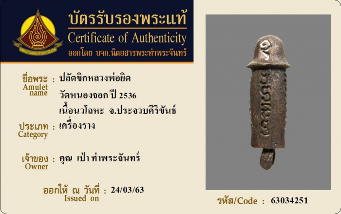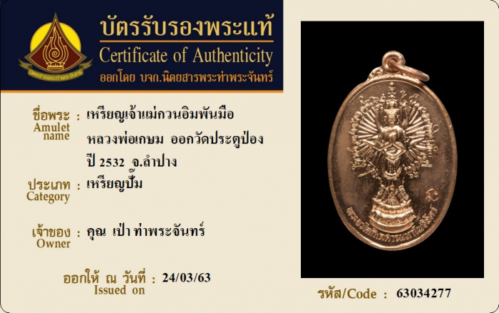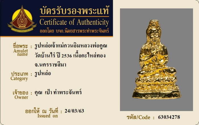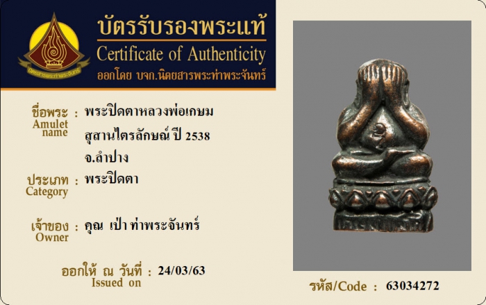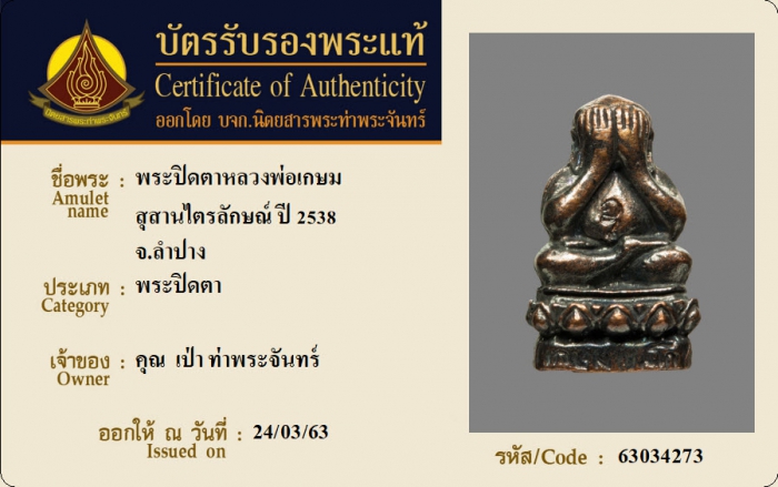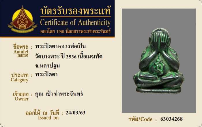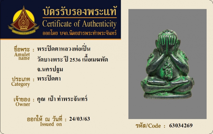 ค้นหาใบการันตีพระแท้