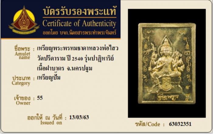 ค้นหาใบการันตีพระแท้