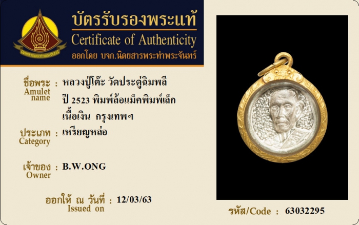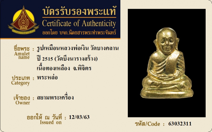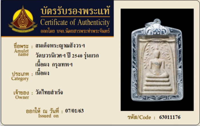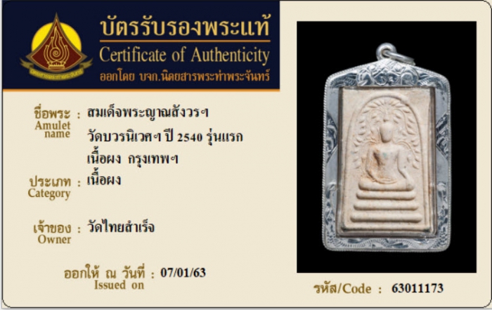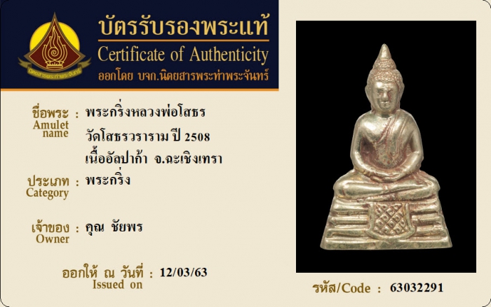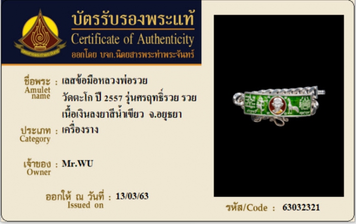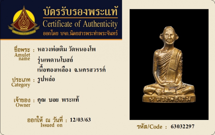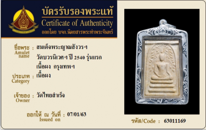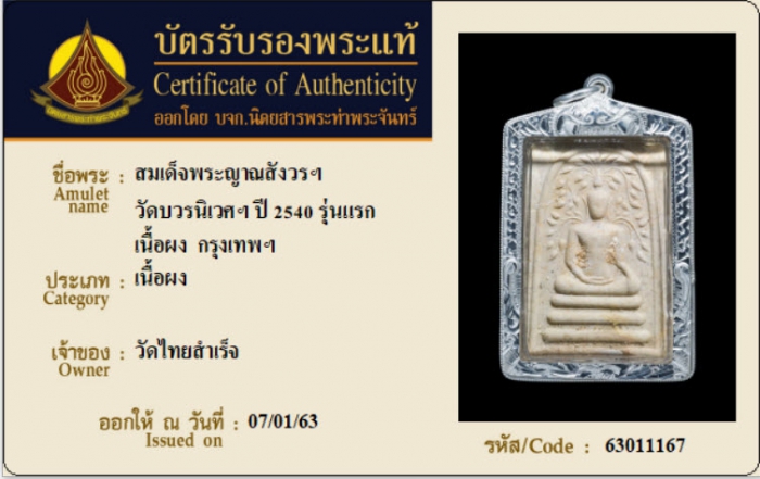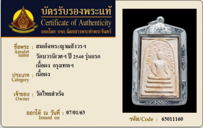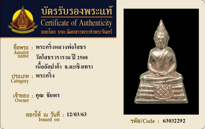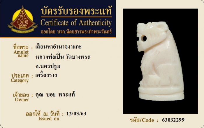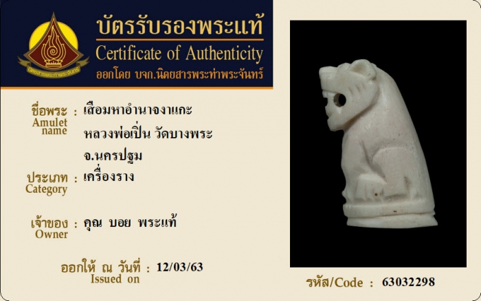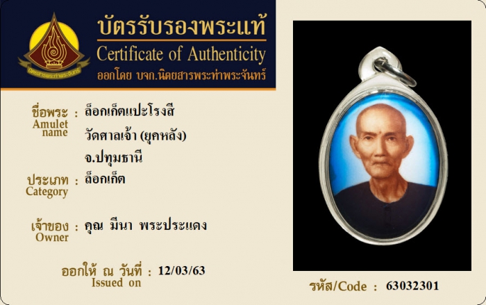 ค้นหาใบการันตีพระแท้