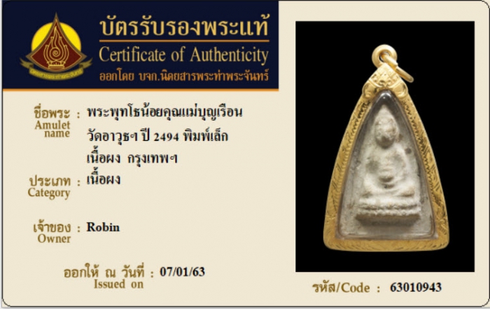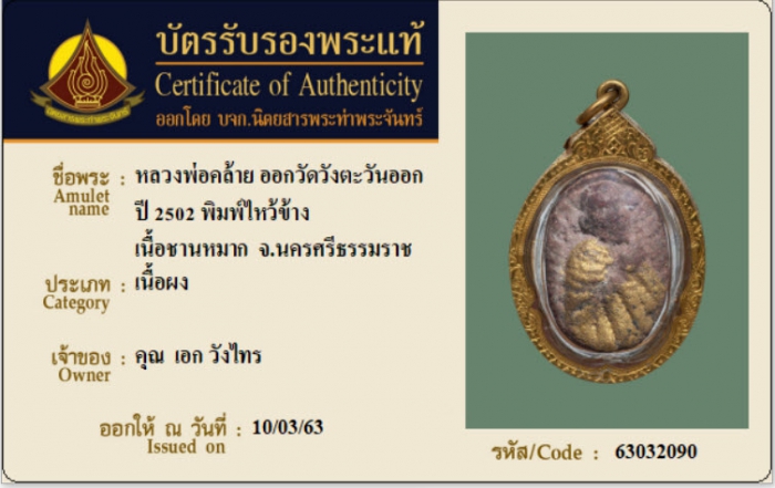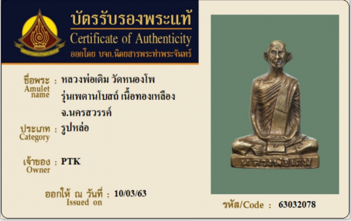 ค้นหาใบการันตีพระแท้