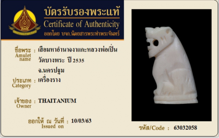 ค้นหาใบการันตีพระแท้