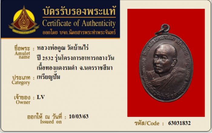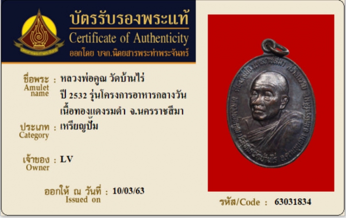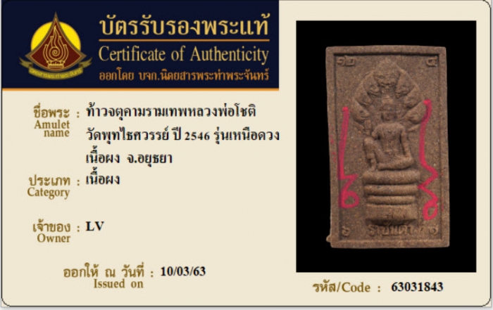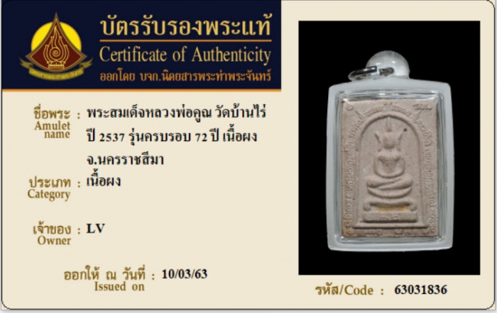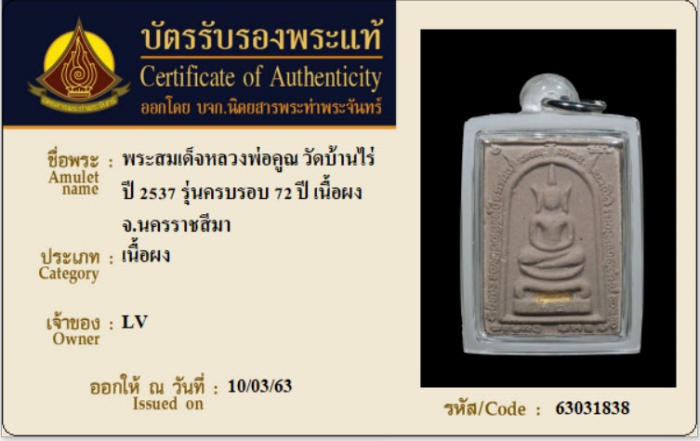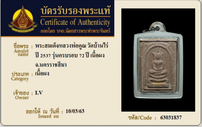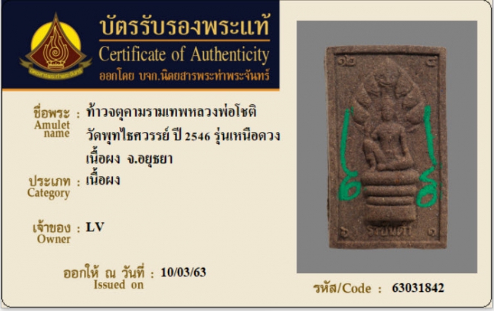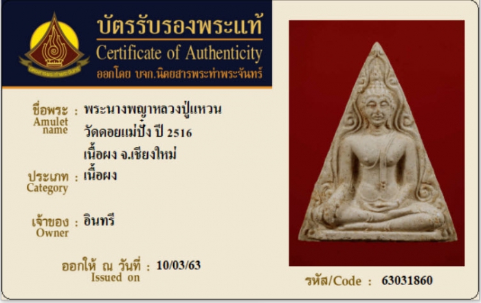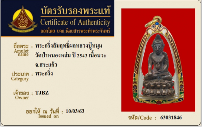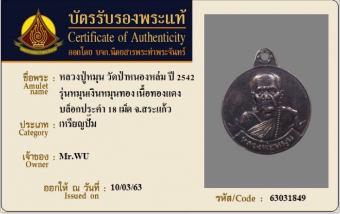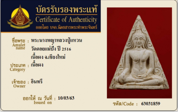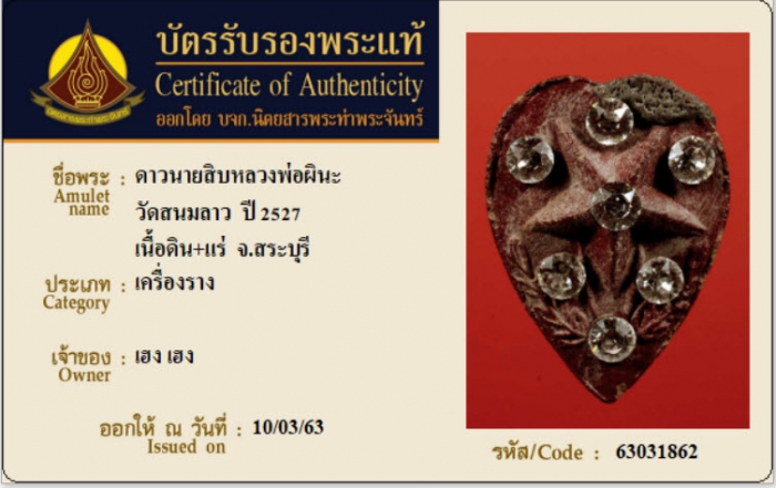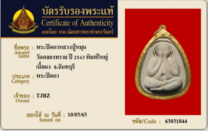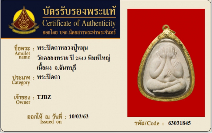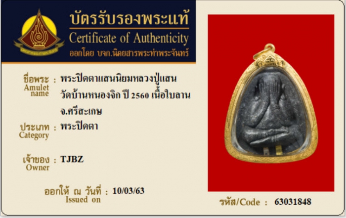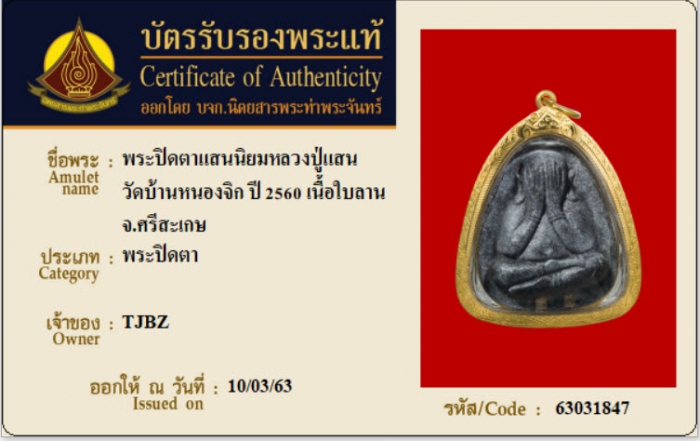 ค้นหาใบการันตีพระแท้