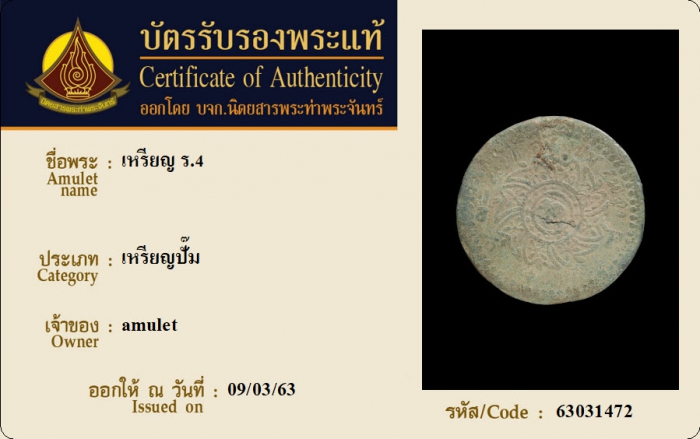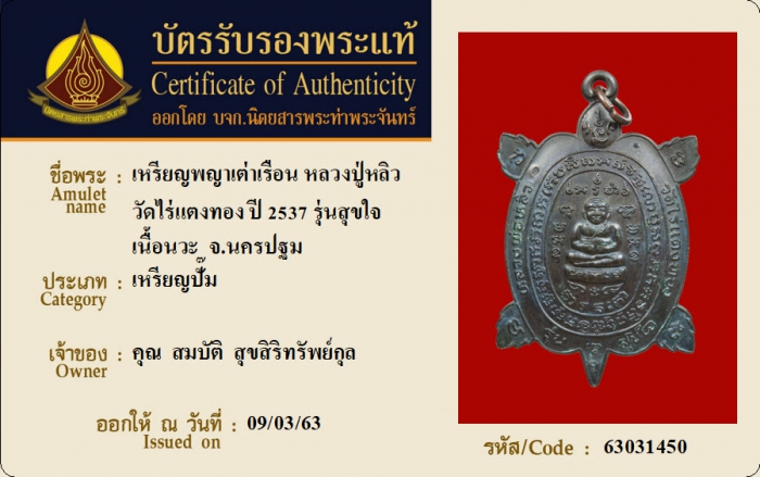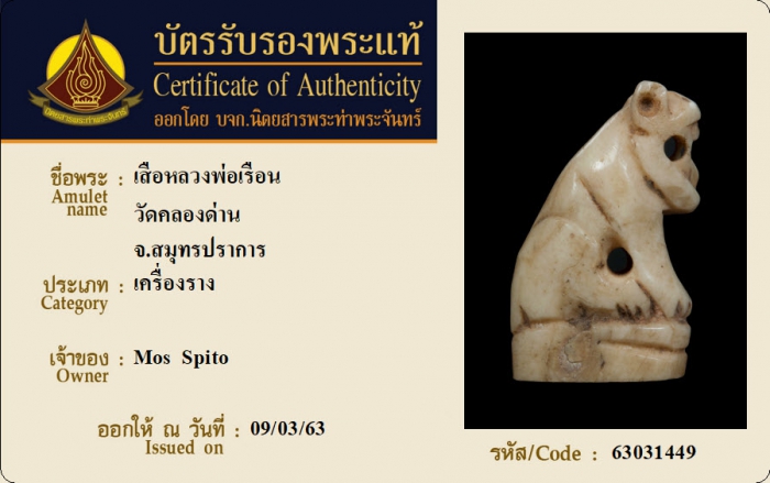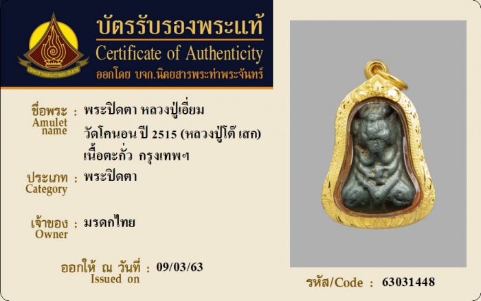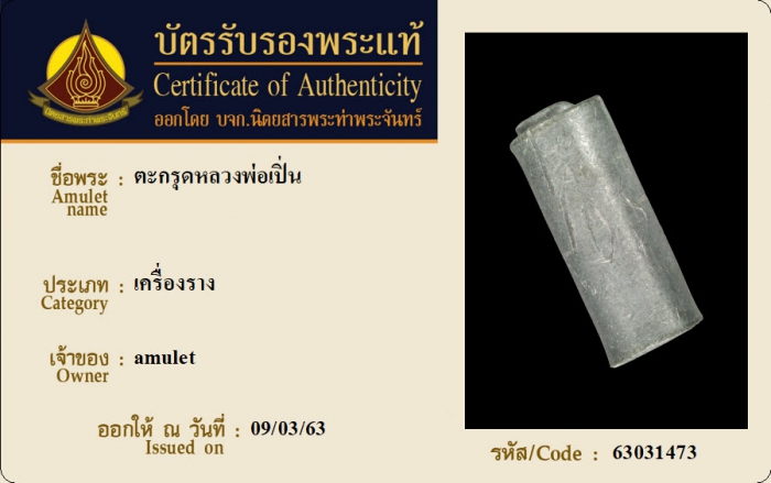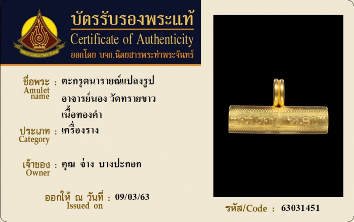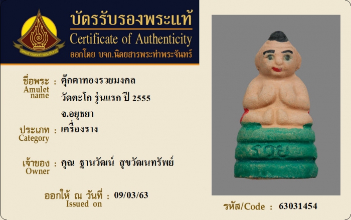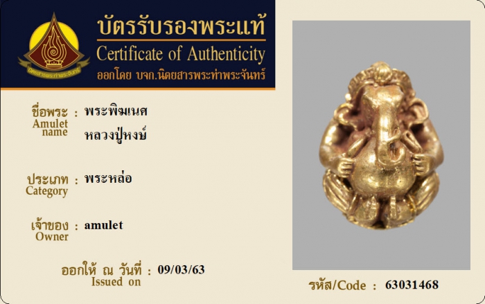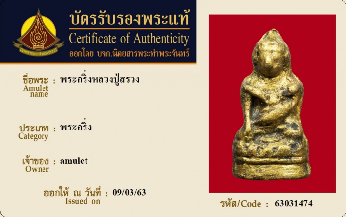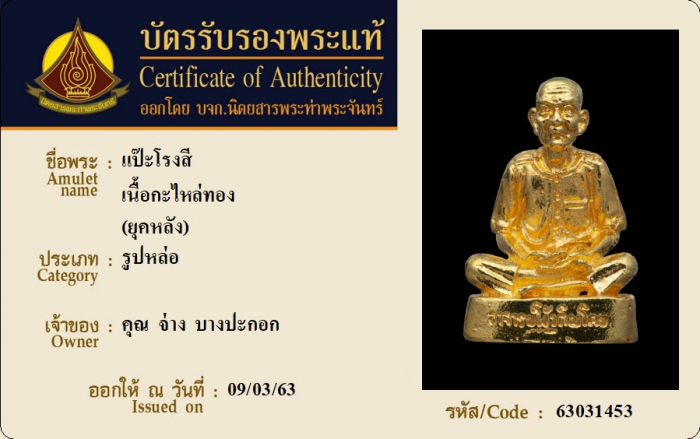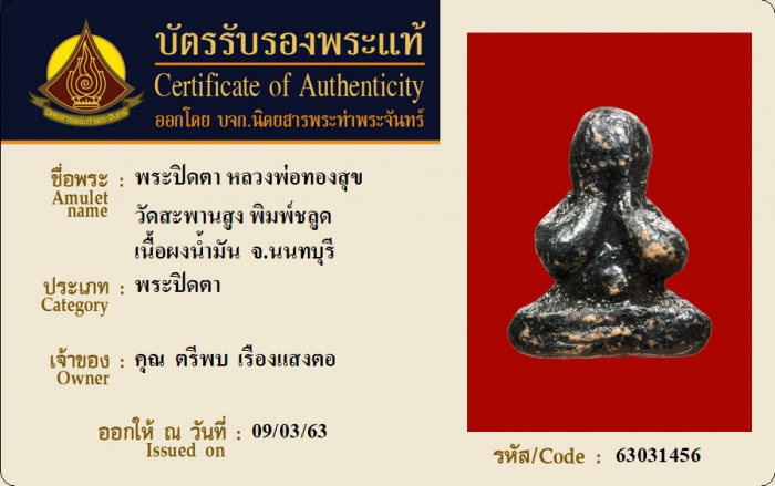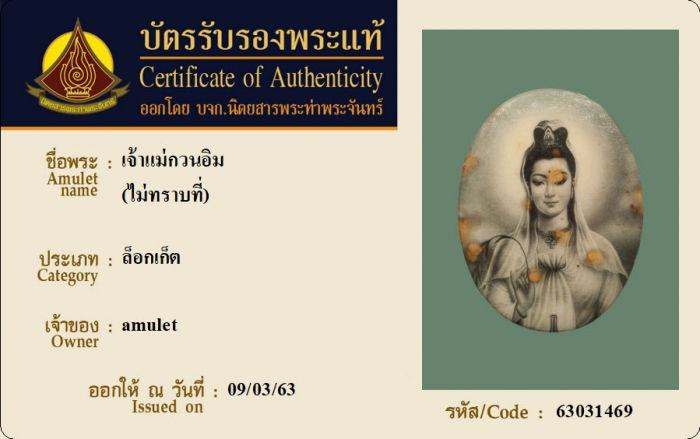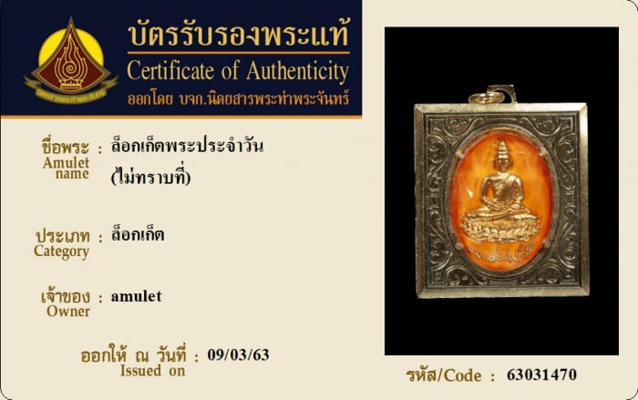 ค้นหาใบการันตีพระแท้