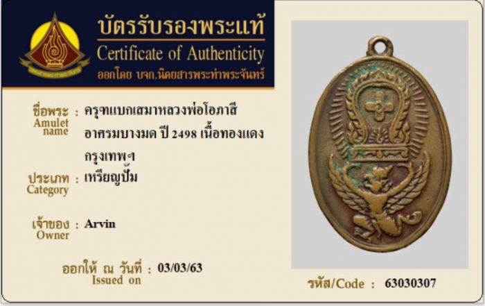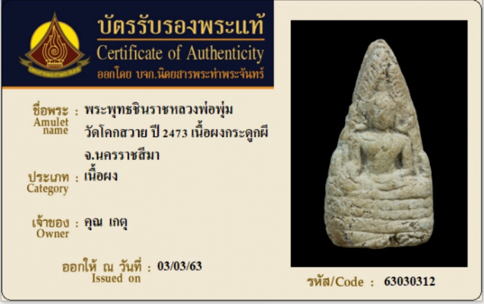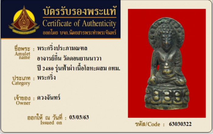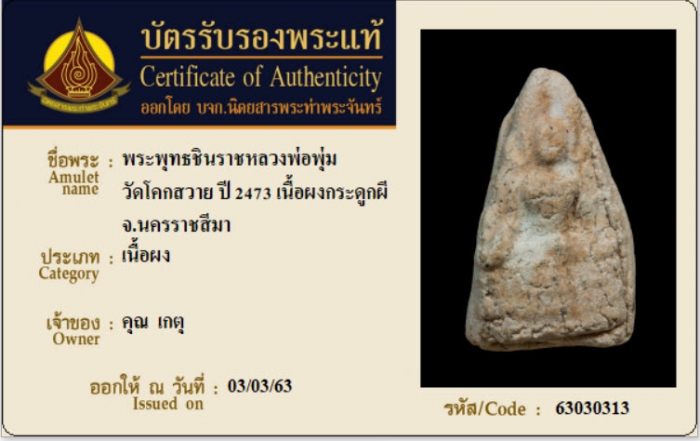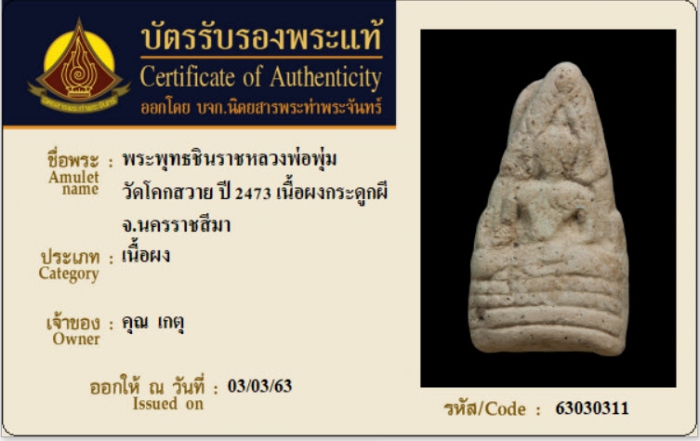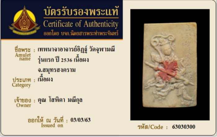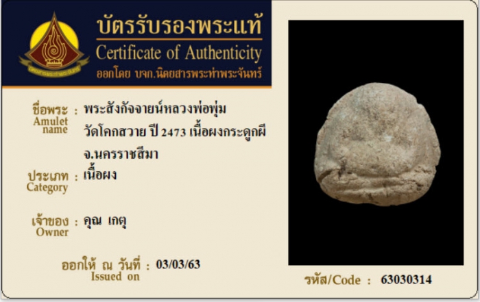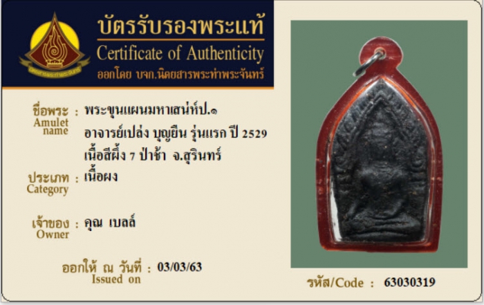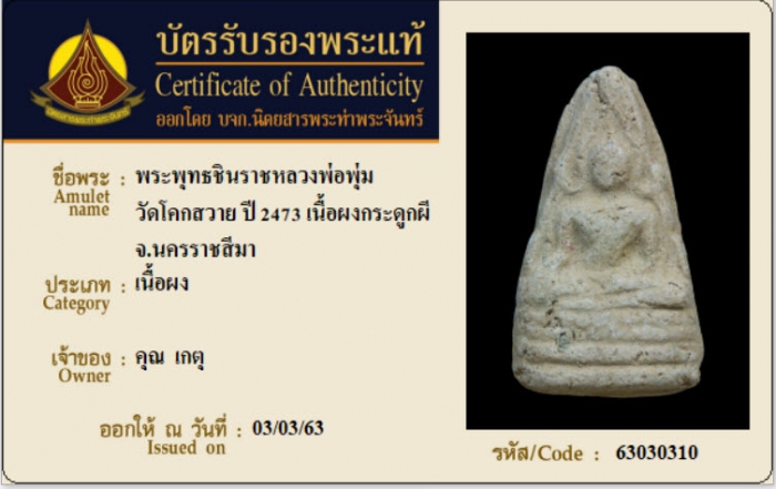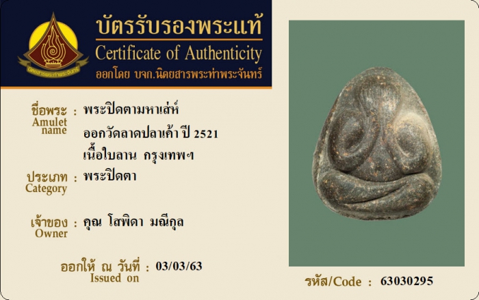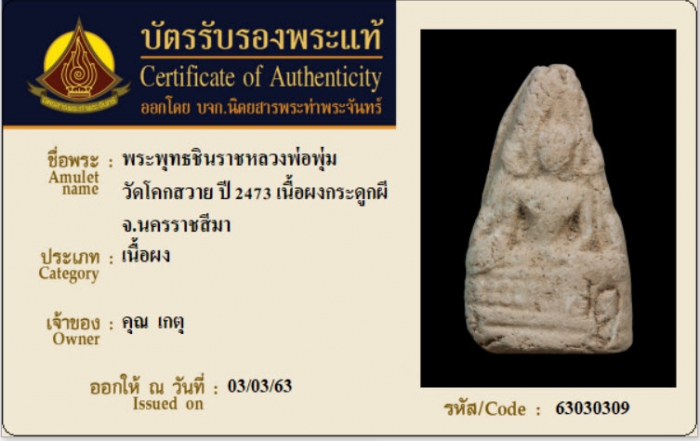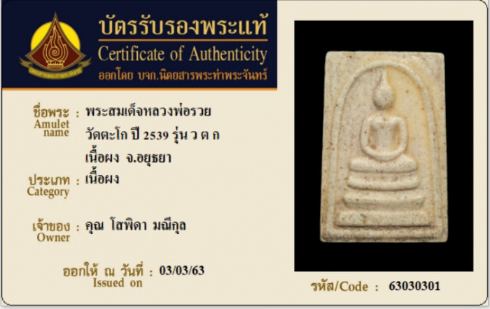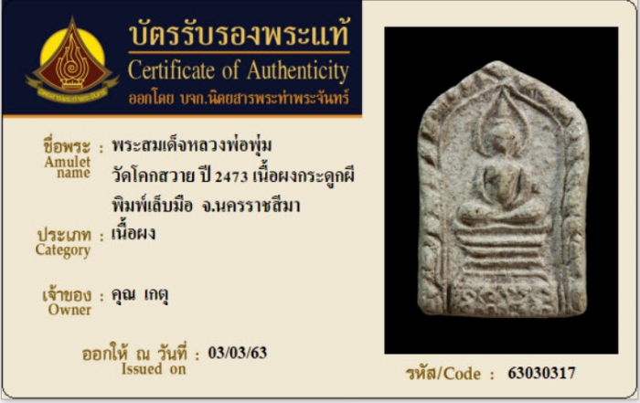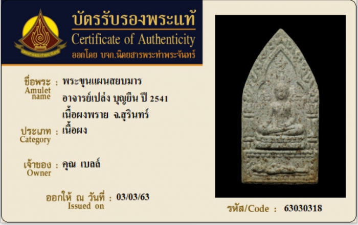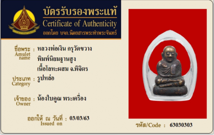 ค้นหาใบการันตีพระแท้
