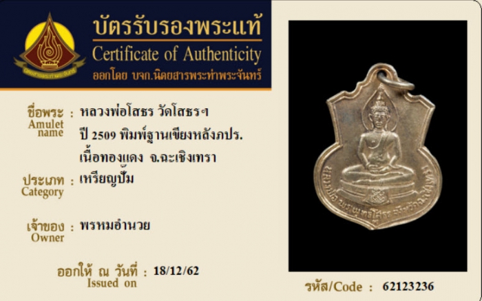 ค้นหาใบการันตีพระแท้