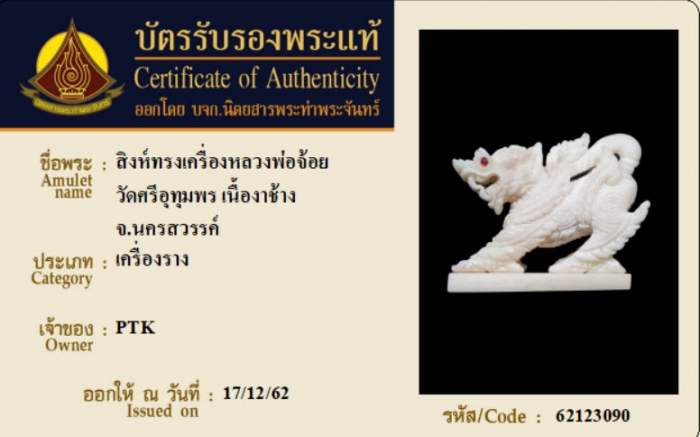 ค้นหาใบการันตีพระแท้