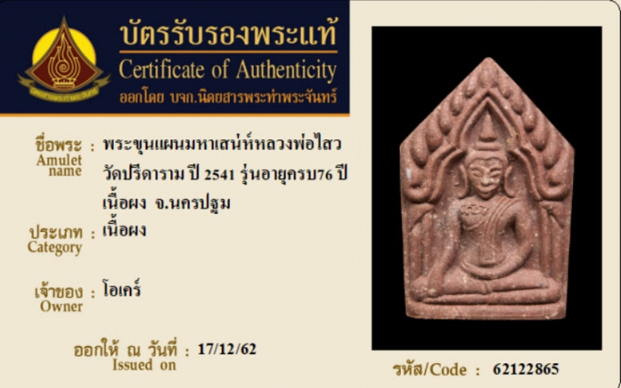 ค้นหาใบการันตีพระแท้