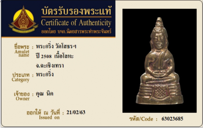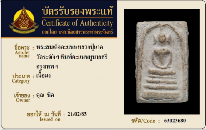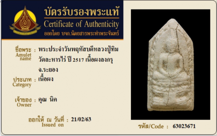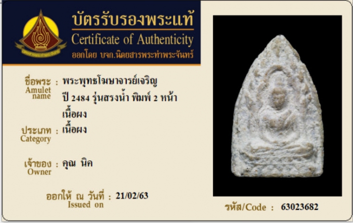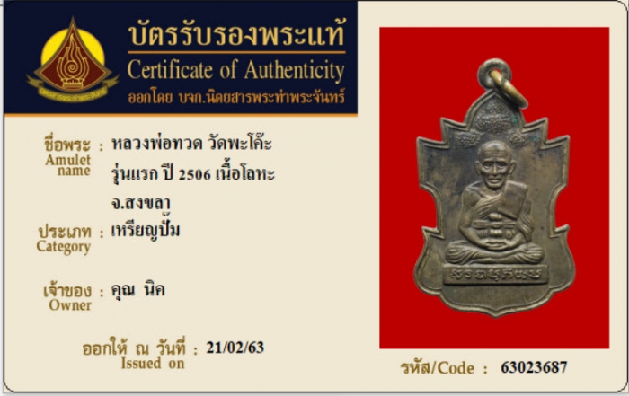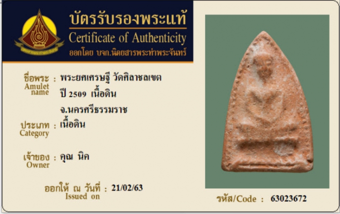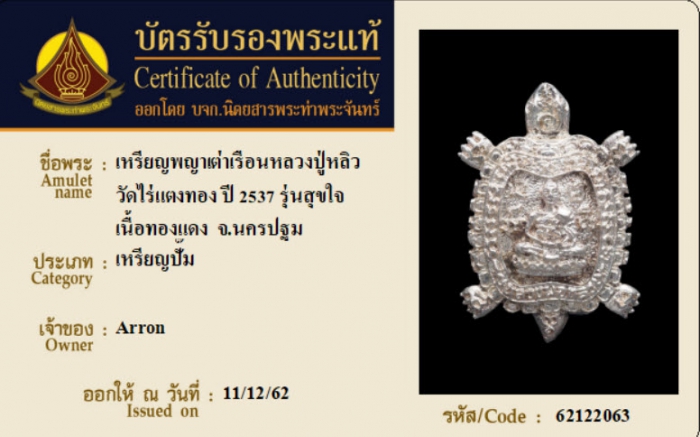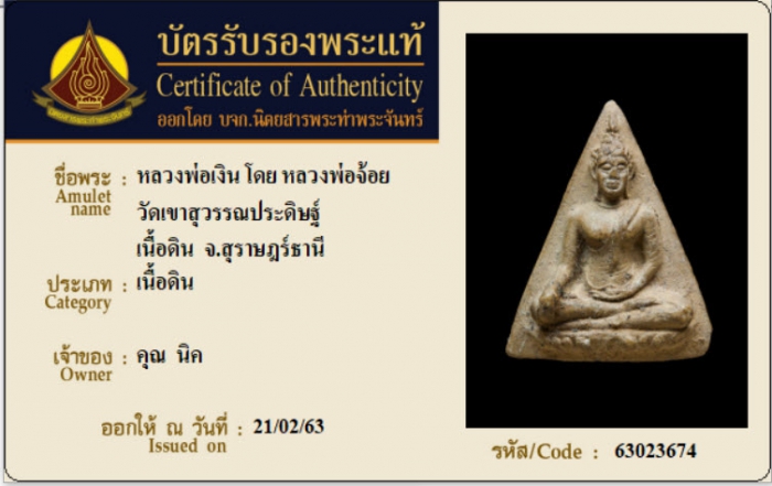 ค้นหาใบการันตีพระแท้