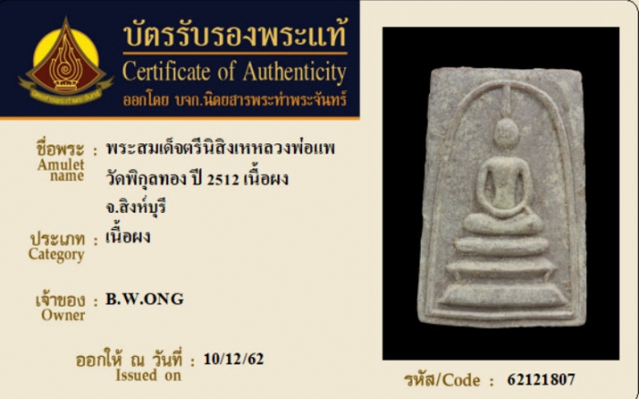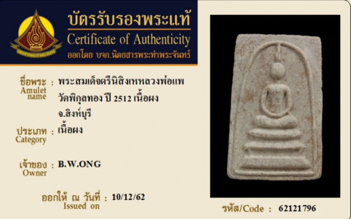 ค้นหาใบการันตีพระแท้