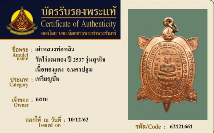 ค้นหาใบการันตีพระแท้