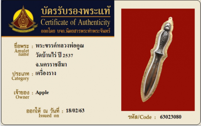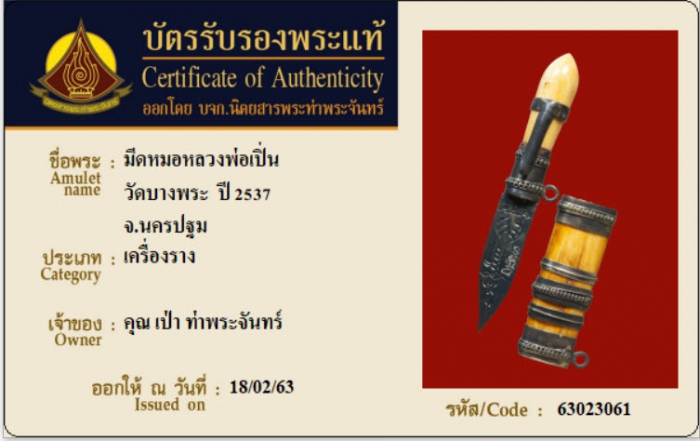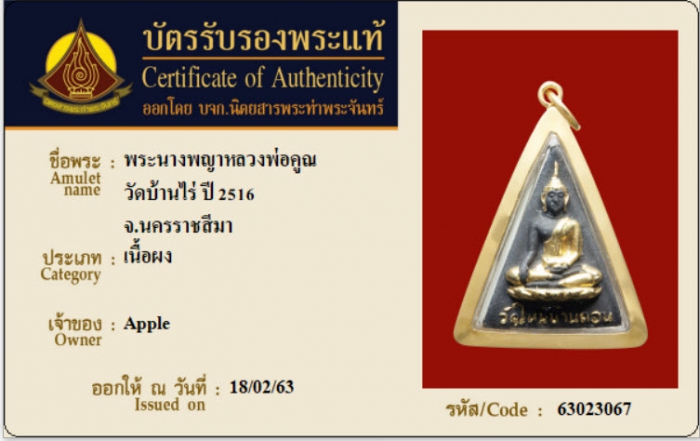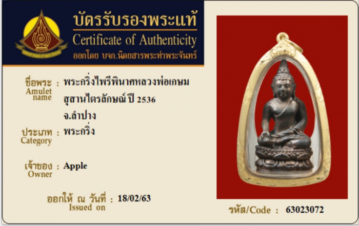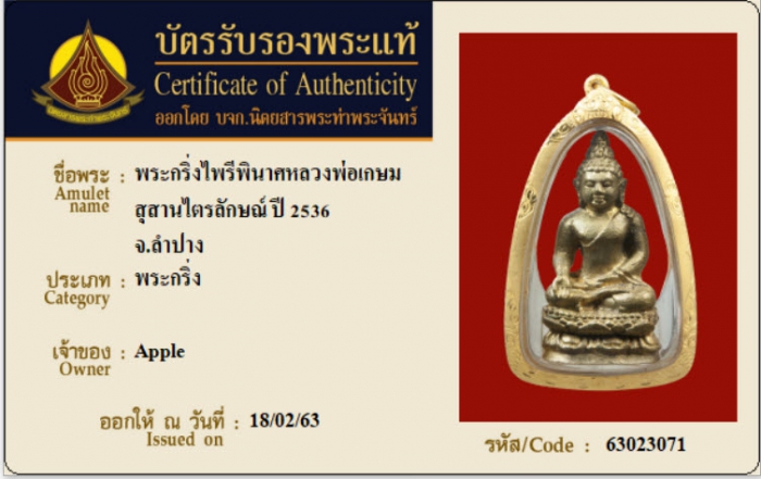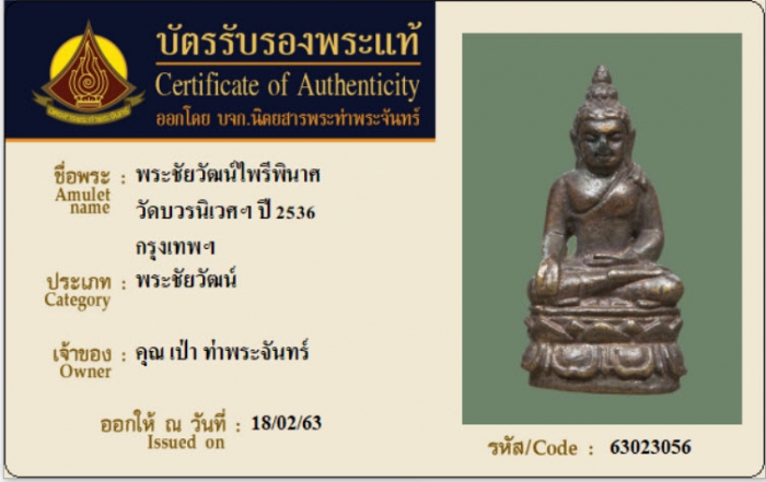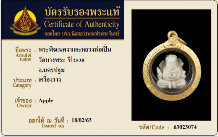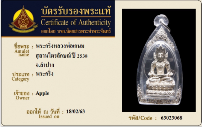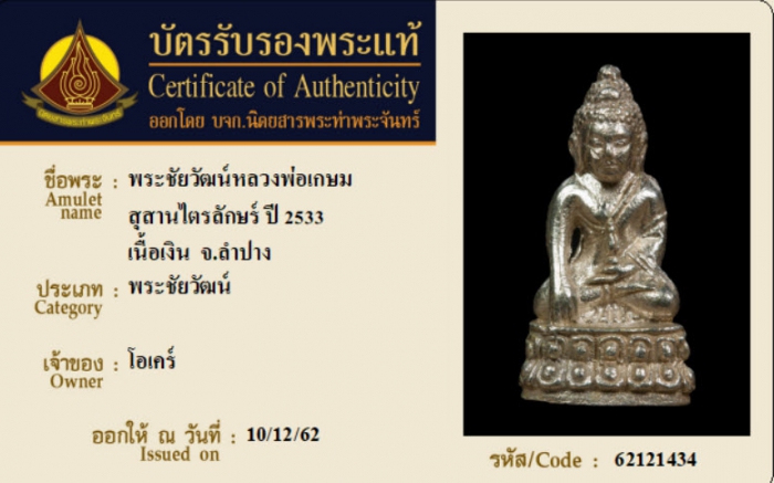 ค้นหาใบการันตีพระแท้