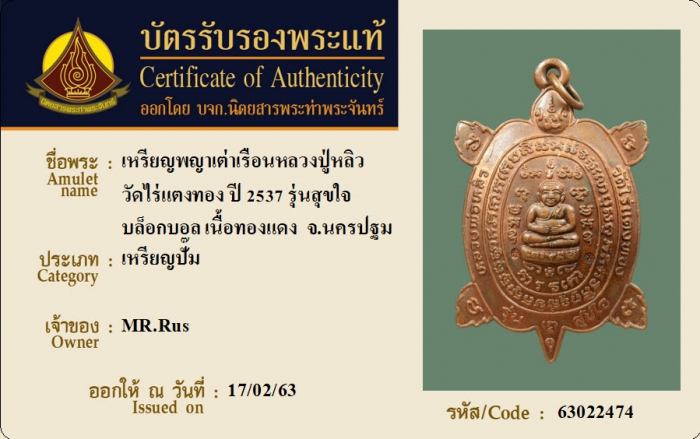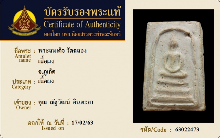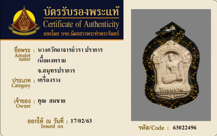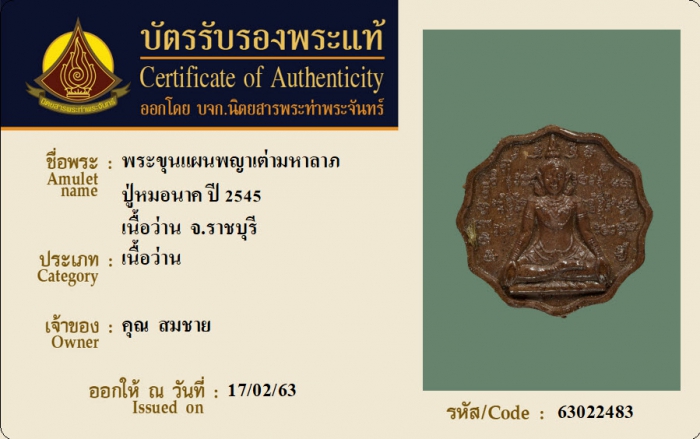 ค้นหาใบการันตีพระแท้