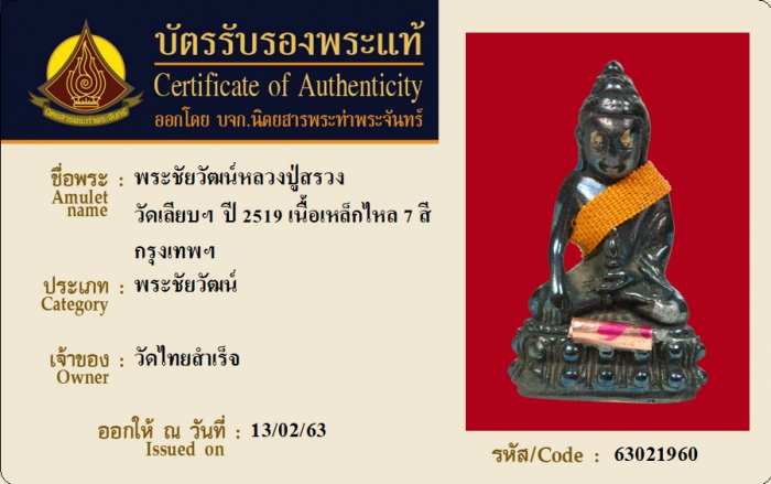 ค้นหาใบการันตีพระแท้