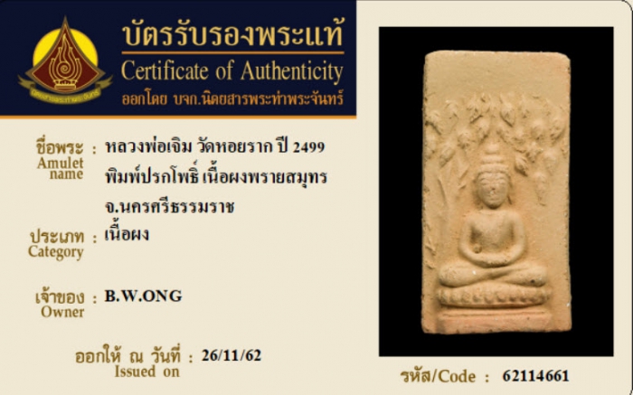 ค้นหาใบการันตีพระแท้