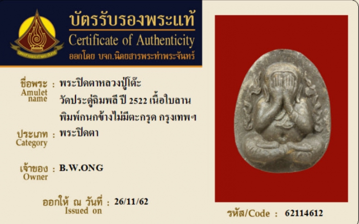 ค้นหาใบการันตีพระแท้