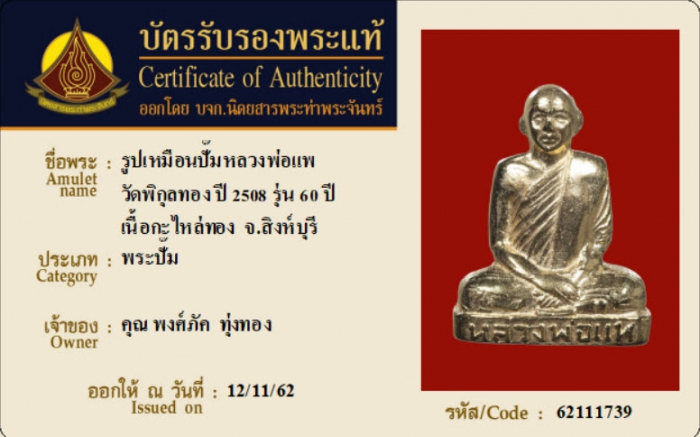 ค้นหาใบการันตีพระแท้