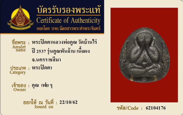 ค้นหาใบการันตีพระแท้