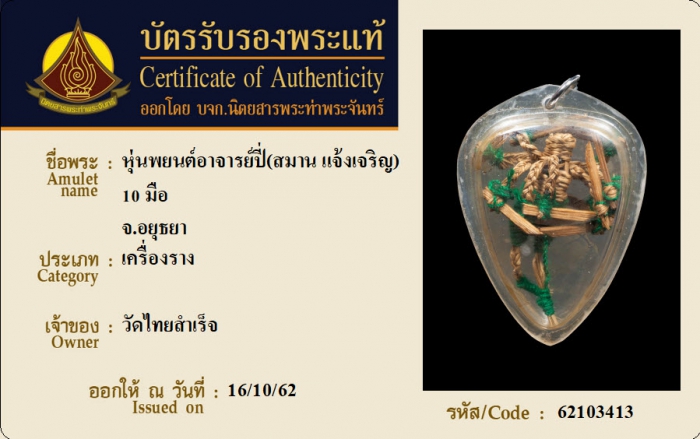ค้นหาใบการันตีพระแท้