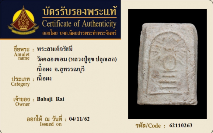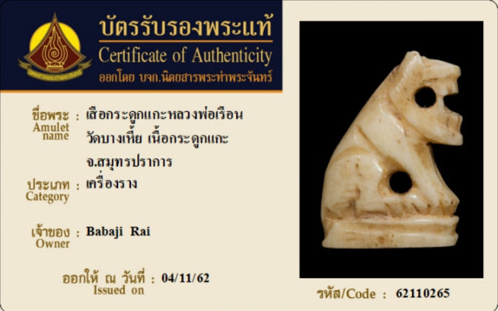 ค้นหาใบการันตีพระแท้