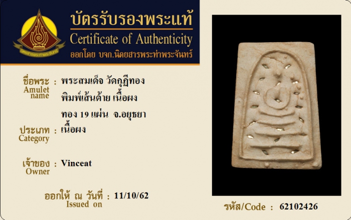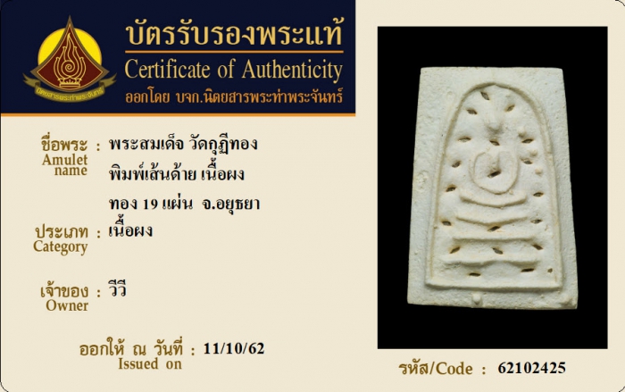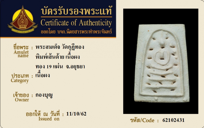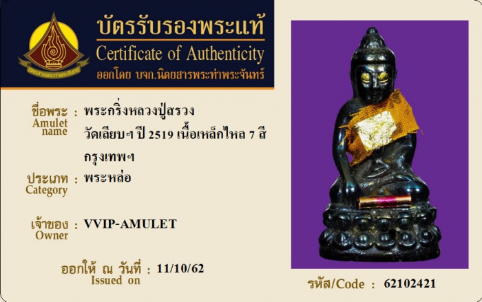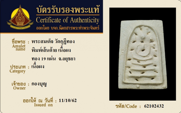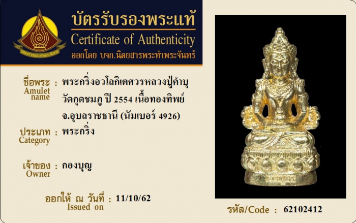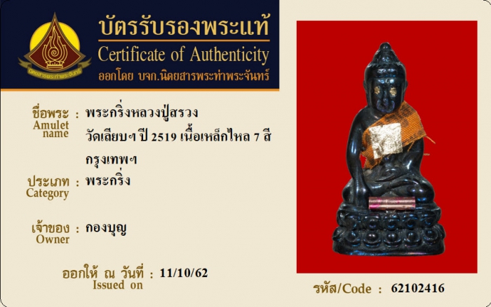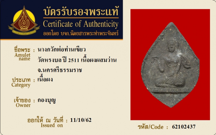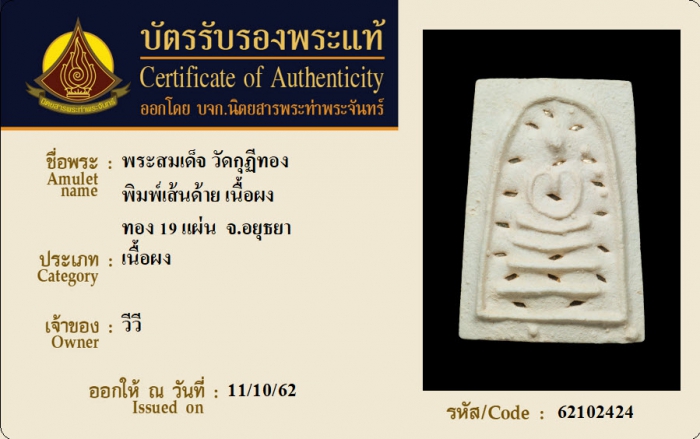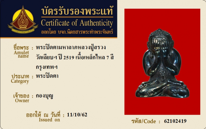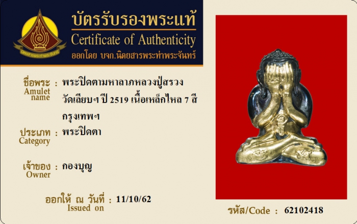 ค้นหาใบการันตีพระแท้