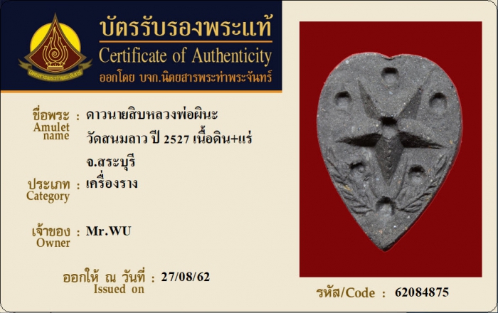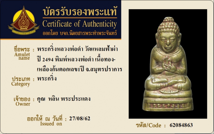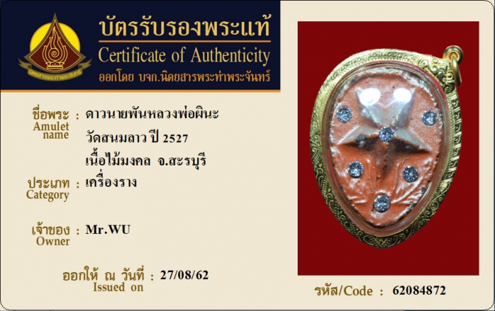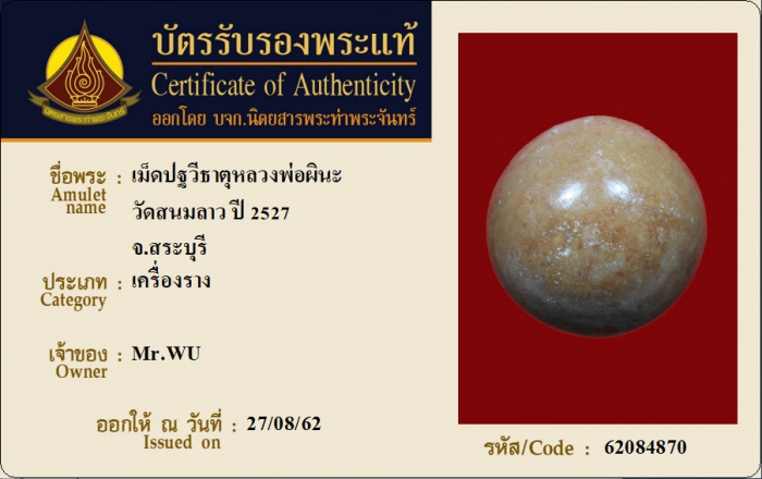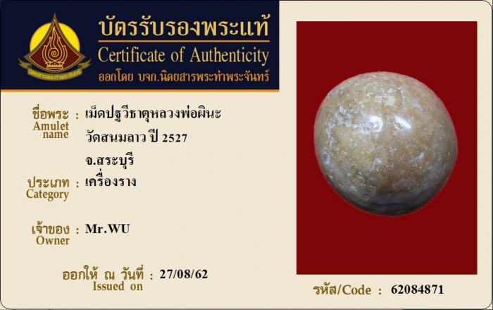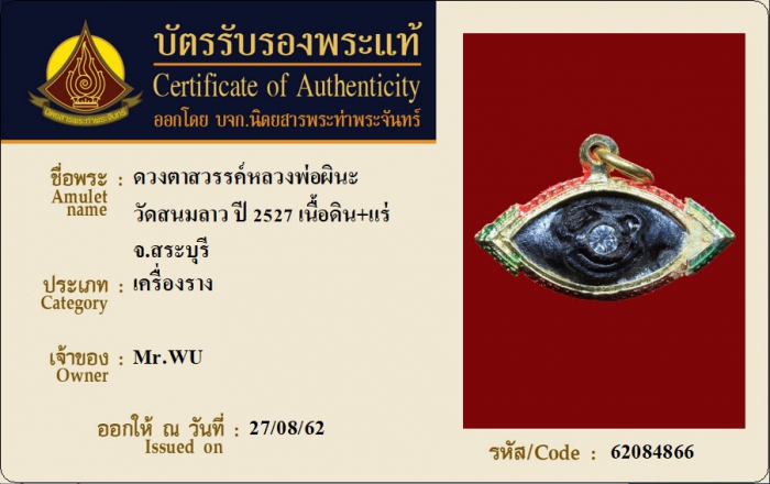 ค้นหาใบการันตีพระแท้