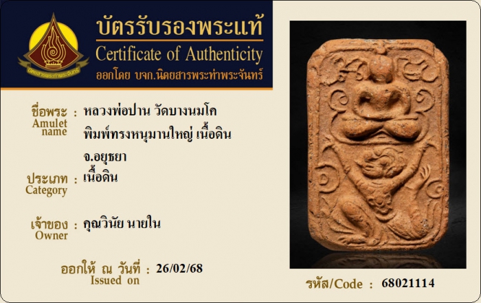 ค้นหาใบการันตีพระแท้