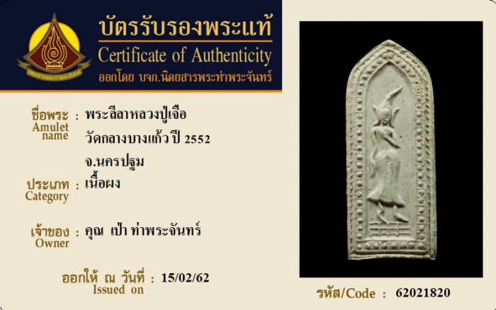ค้นหาใบการันตีพระแท้