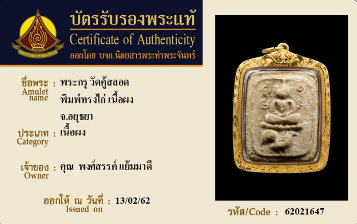 ค้นหาใบการันตีพระแท้