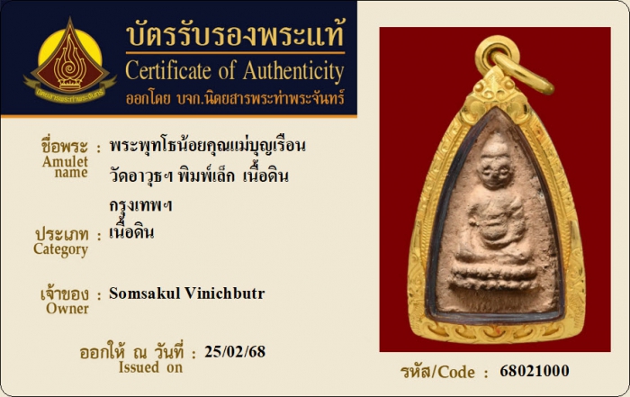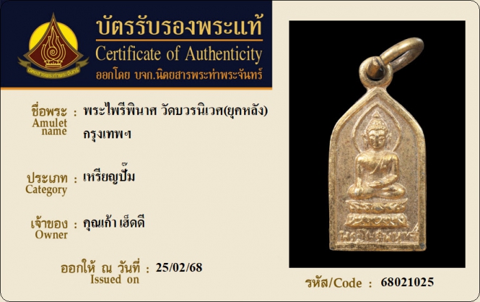 ค้นหาใบการันตีพระแท้