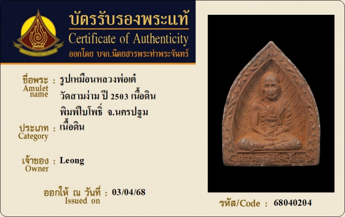 ค้นหาใบการันตีพระแท้