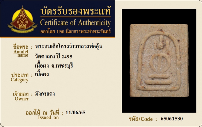 ค้นหาใบการันตีพระแท้