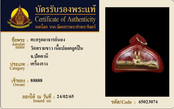 ค้นหาใบการันตีพระแท้