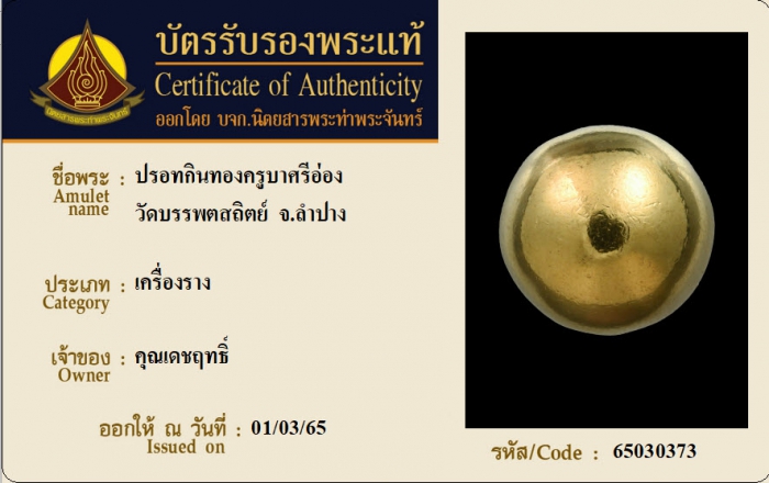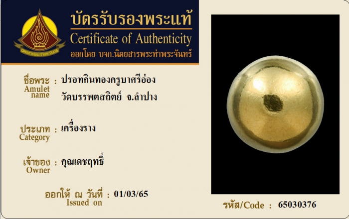 ค้นหาใบการันตีพระแท้