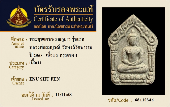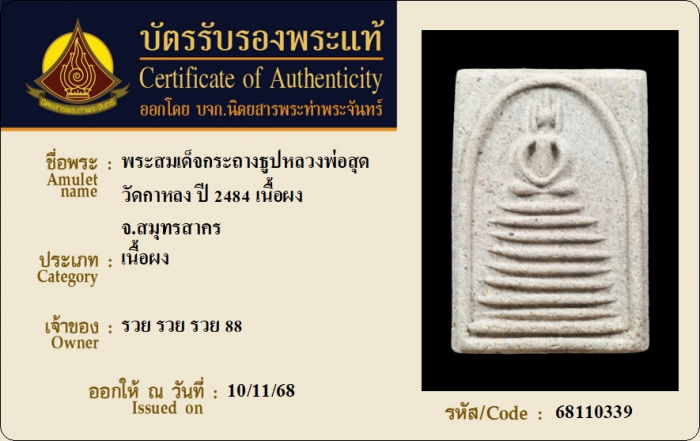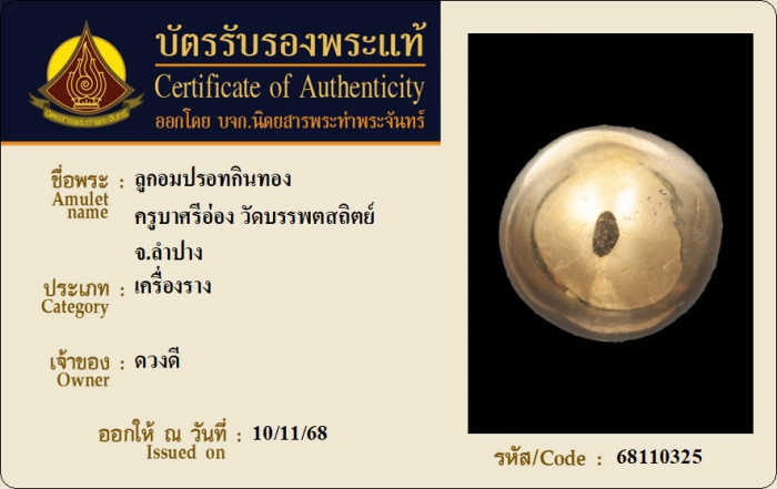 ค้นหาใบการันตีพระแท้