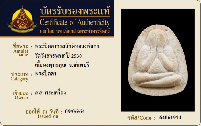 ค้นหาใบการันตีพระแท้