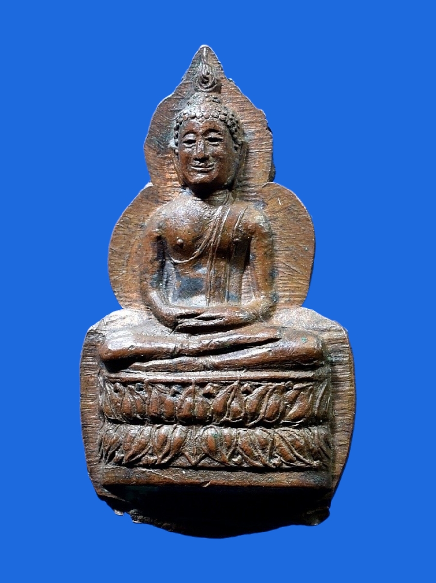 รายการที่ 1049 เหรียญในลพ.หว่าง วัดกําแพงแสน พิมพ์ใบขี้เหล็ก เนื้อทองแดง