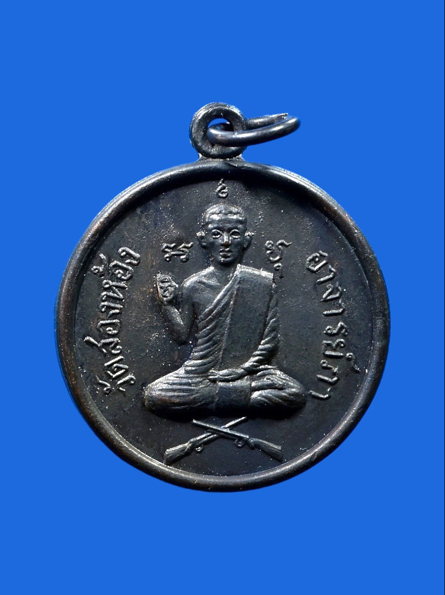 รายการที่ 1053 เหรียญปั๊มลพ.ภา วัดสองห้อง รุ่นแรก ปืนไขว้ เนื้อทองแดงรมดํา