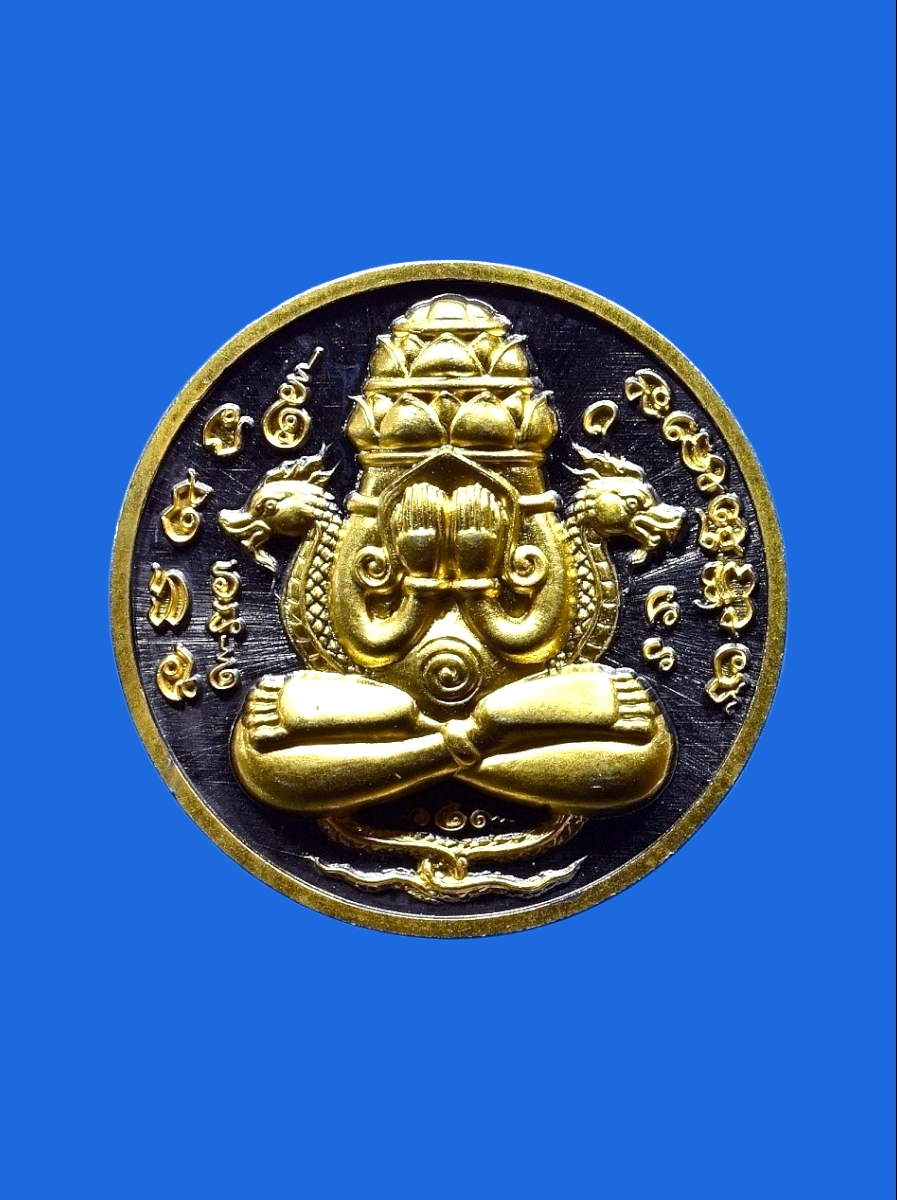 รายการที่ 1124 เหรียญปิดตา รุ่นลูกพ่อต้องรวย (ใหญ่) เนื้อเงิน หน้ากากทองคําเงินลงยา