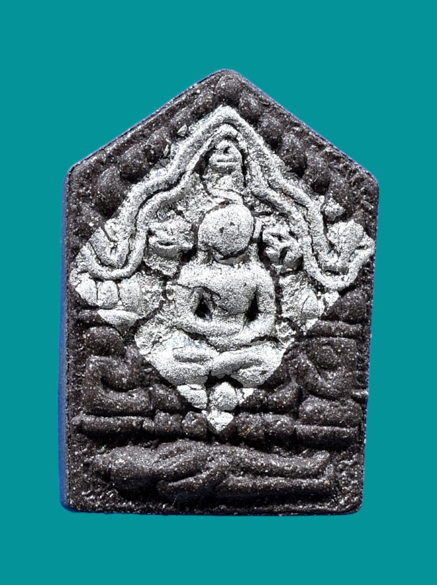 รายการที่ 1715 พระนาคปรกใบมะขาม รุ่นแรก ครูบาอริยชาติ เนื้อเงิน ปี 2554